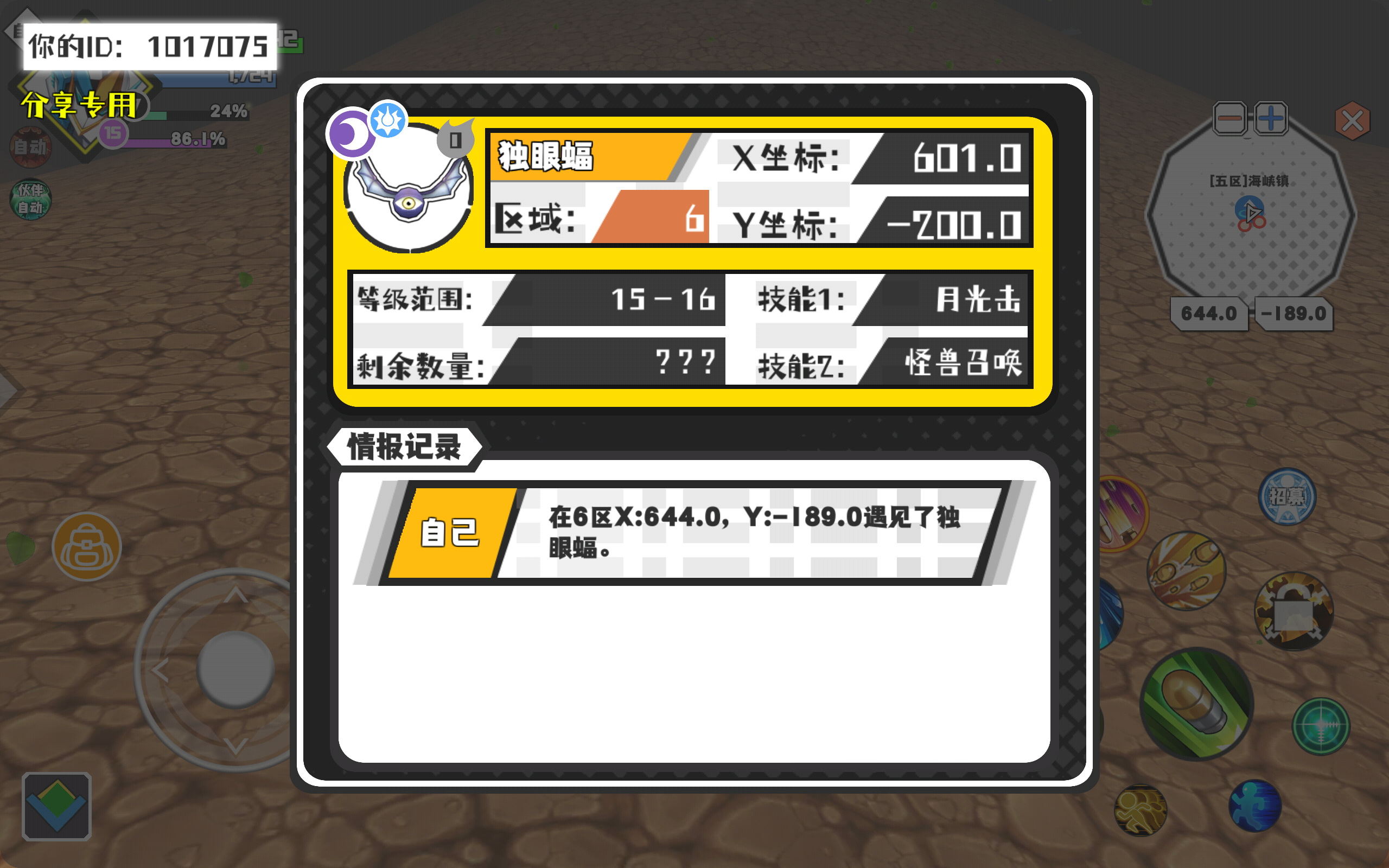 幸运时刻分享! 【魔物异常出没】2月8日下午12点 - 独眼蝠【强度0】 【6区】 【X:601.0, Y:-200.0】