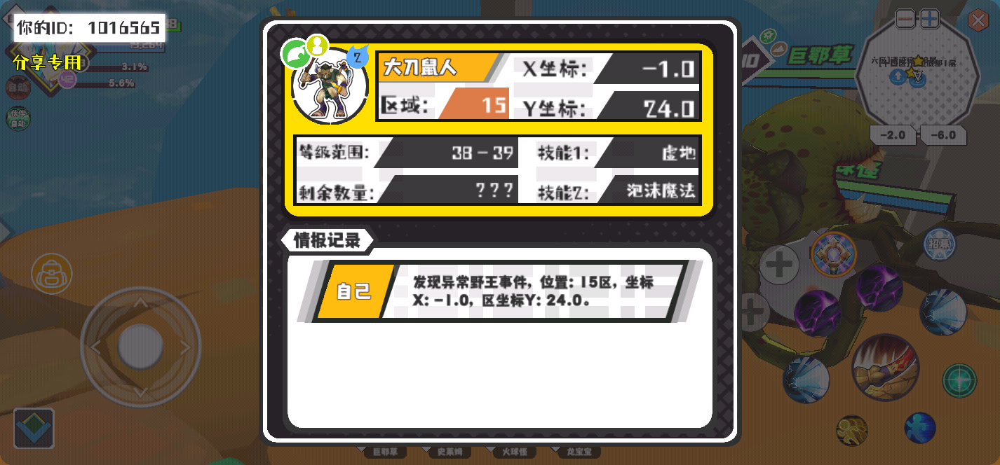 幸运时刻分享! 【野王异常出没】2月8日下午5点 - 大刀鼠人【强度2】 【15区】 【X:-1.0, Y:24.0】