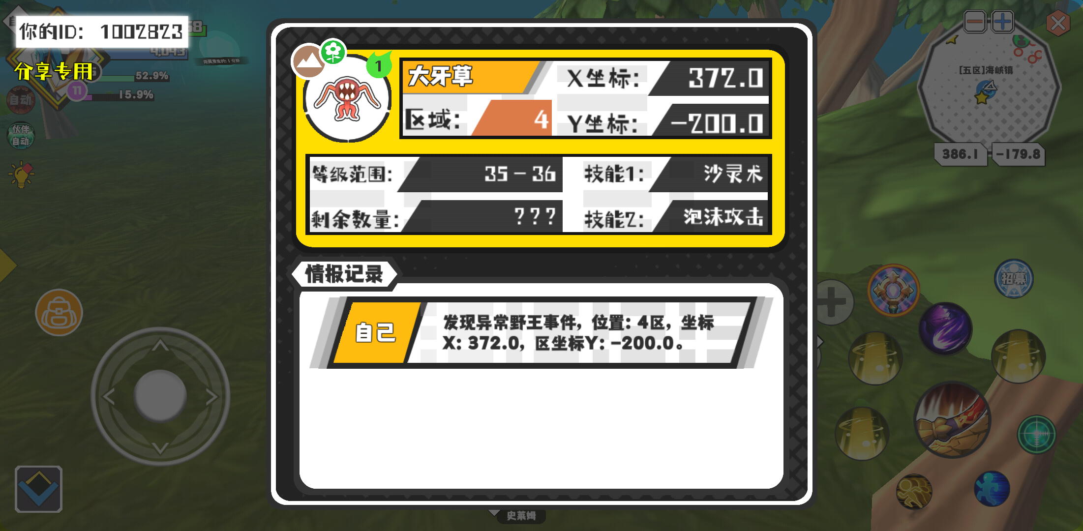 幸运时刻分享! 【野王异常出没】2月7日下午5点 - 大牙草【强度1】 【4区】 【X:372.0, Y:-200.0】