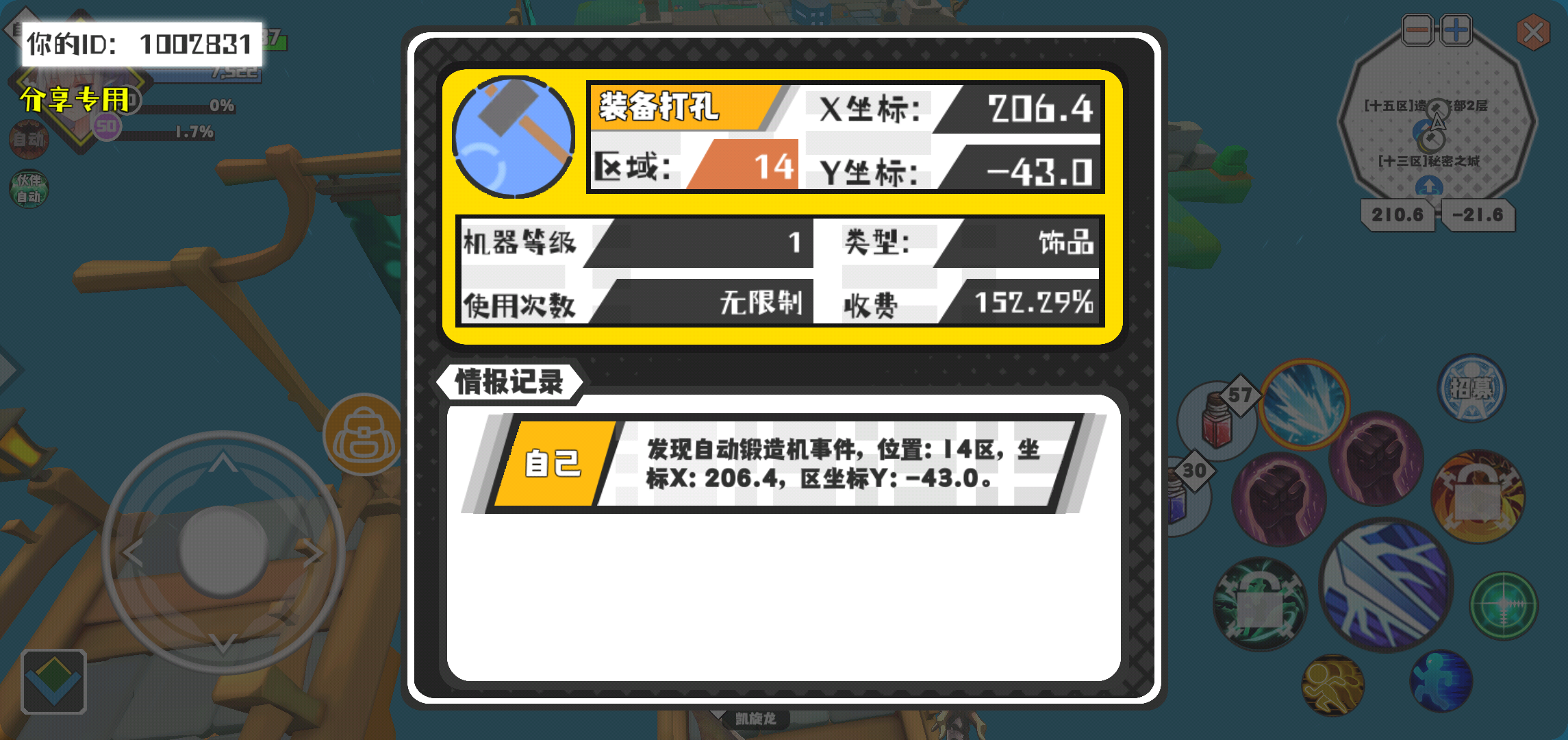 幸运时刻分享! 【自动锻造机】2月7日下午4点 - 装备打孔【1级机器】 【14区】 【X:206.4, Y:-43.0】