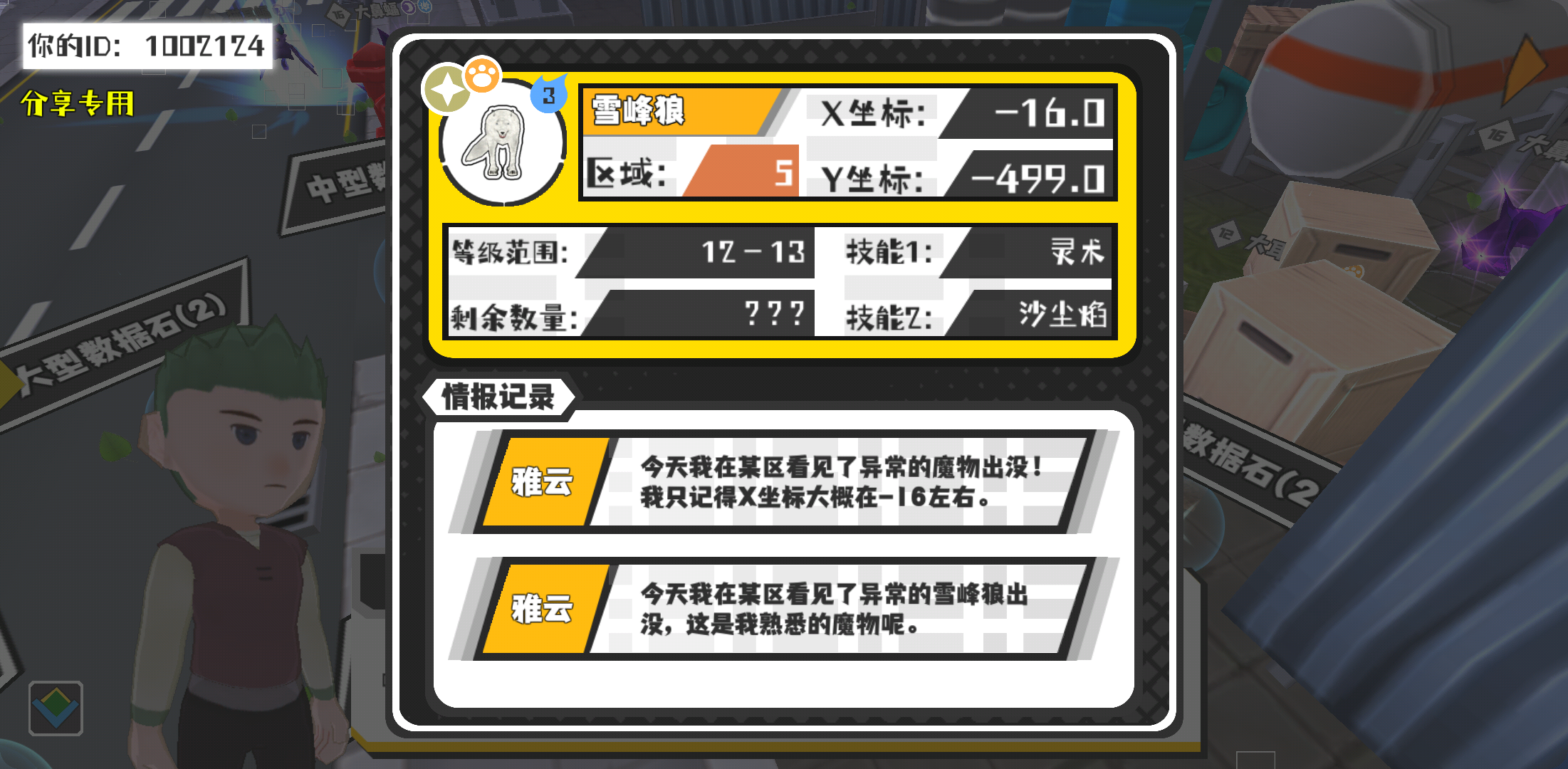 幸运时刻分享! 【魔物异常出没】2月7日下午4点 - 雪峰狼【强度3】 【5区】 【X:-16.0, Y:-499.0】