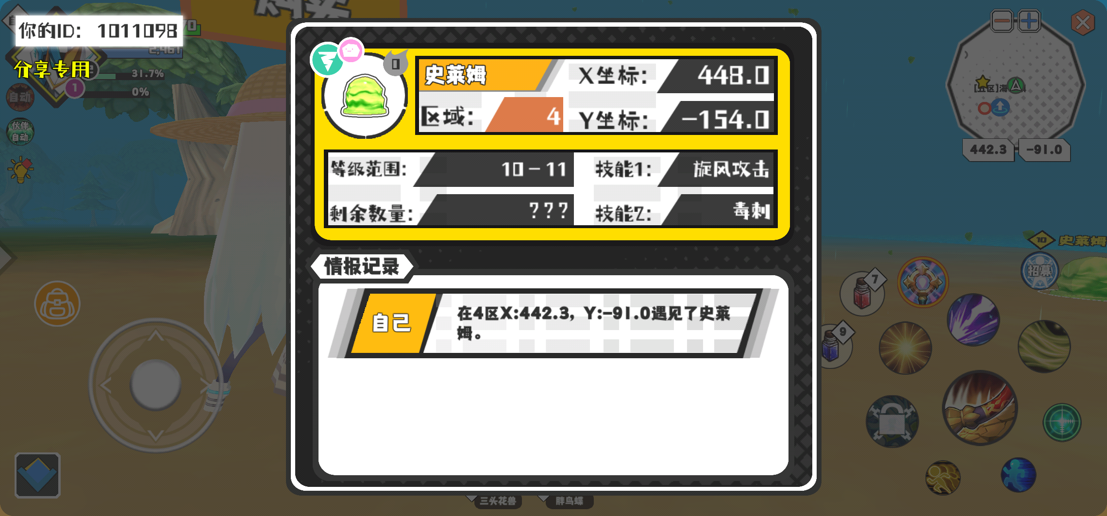 幸运时刻分享! 【魔物异常出没】2月7日下午4点 - 史莱姆【强度0】 【4区】 【X:448.0, Y:-154.0】