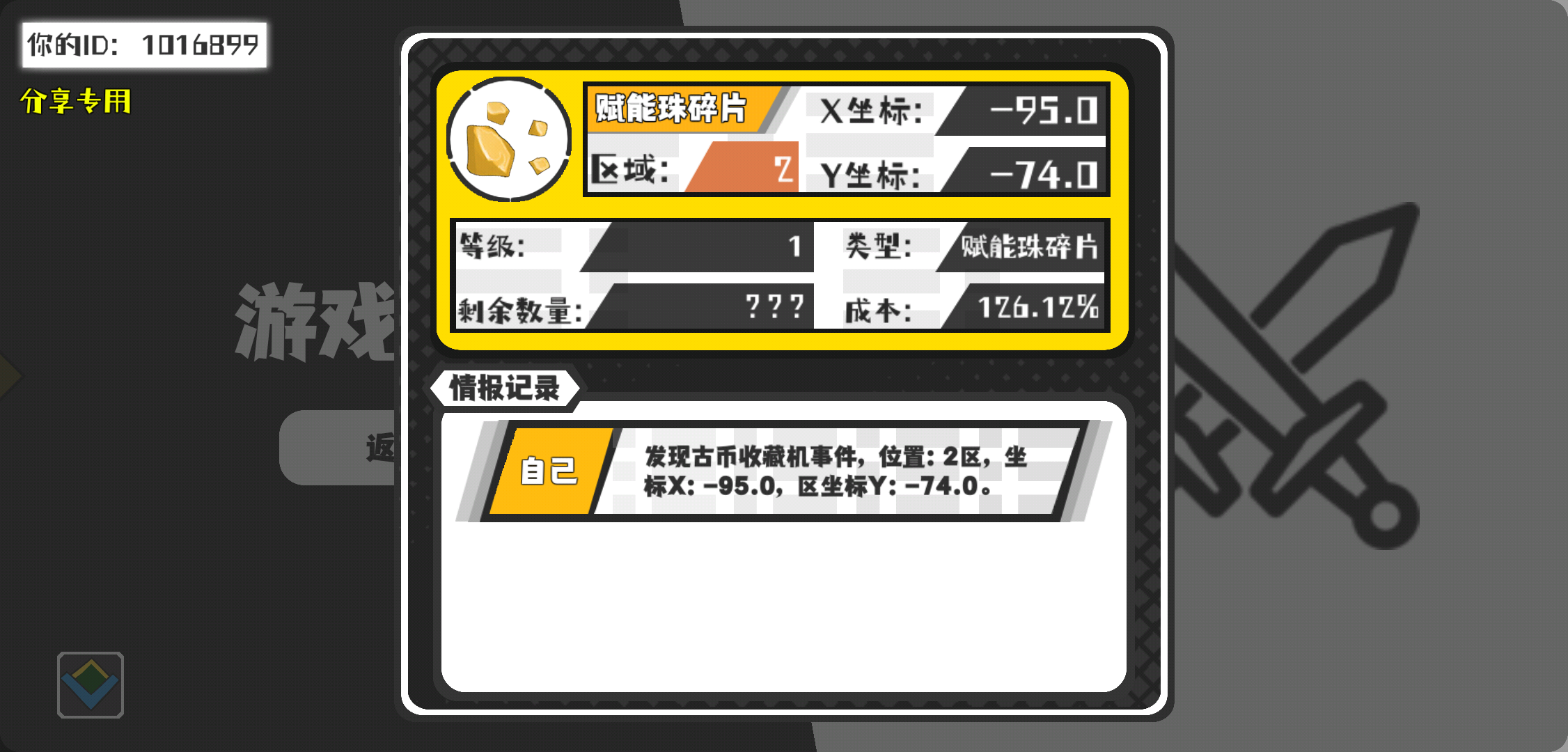 幸运时刻分享! 【古币收藏机】2月7日下午3点 - 赋能珠碎片 【2区】 【X:-95.0, Y:-74.0】