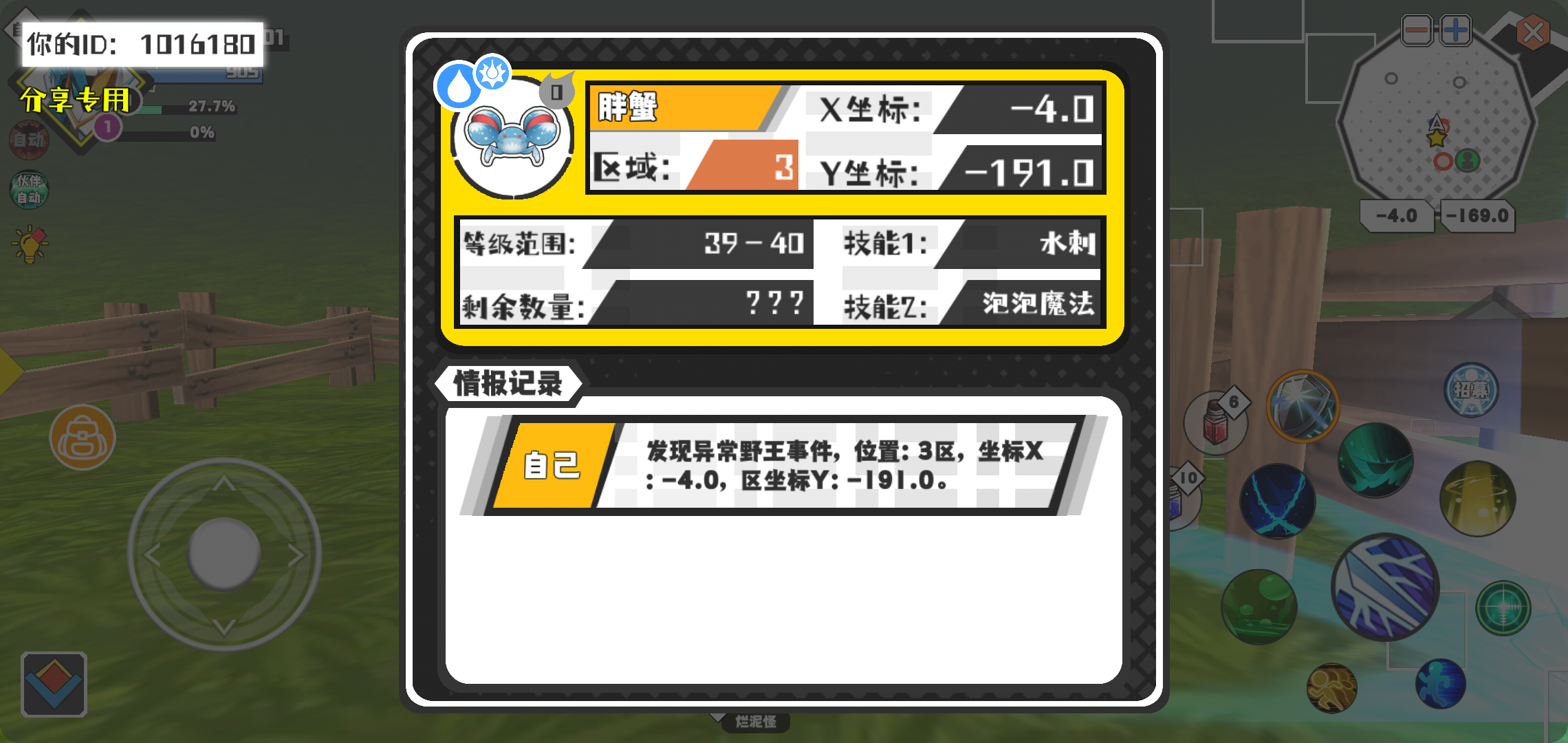 幸运时刻分享! 【野王异常出没】2月6日上午8点 - 胖蟹【强度0】 【3区】 【X:-4.0, Y:-191.0】