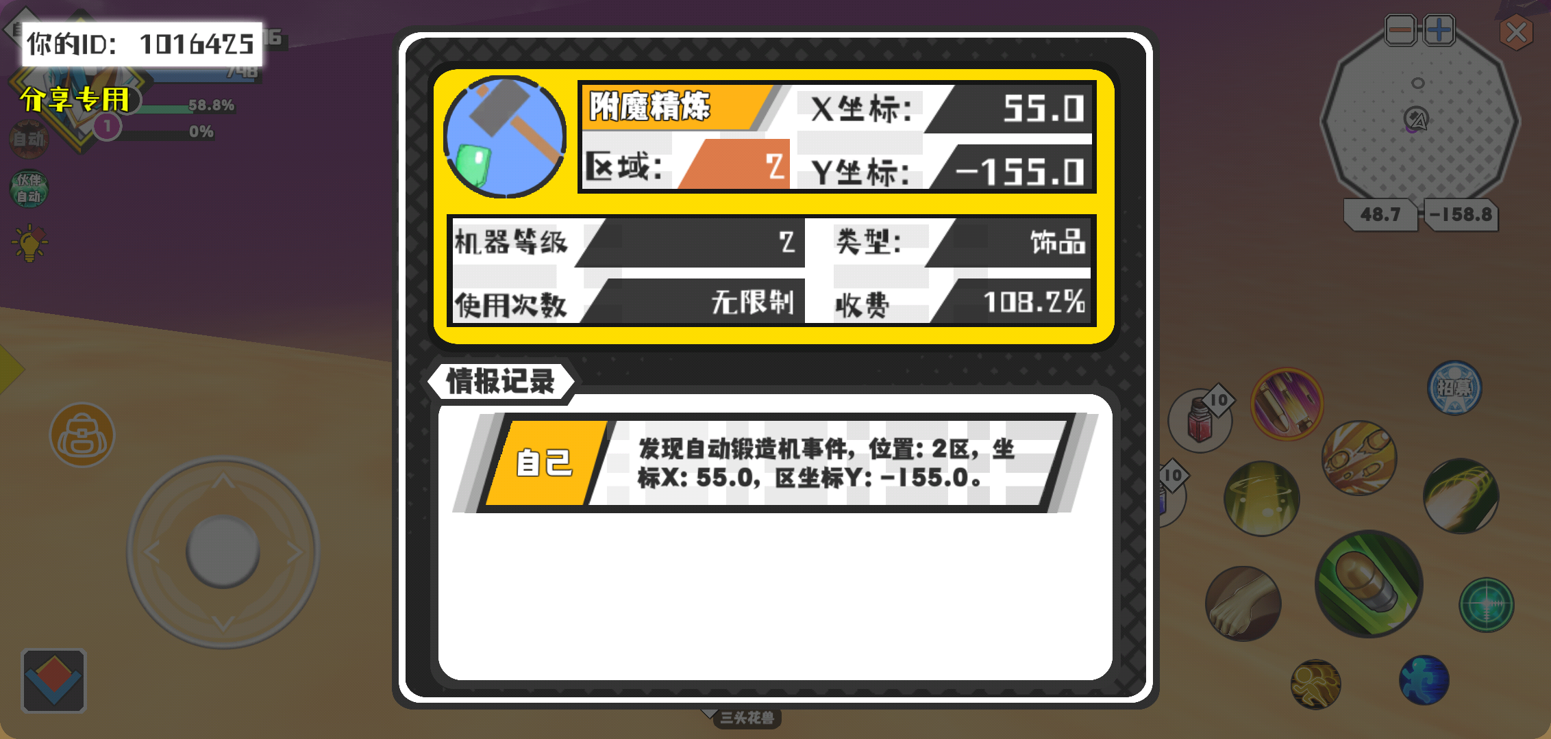 幸运时刻分享! 【自动锻造机】2月6日上午2点 - 附魔精炼【2级机器】 【2区】 【X:55.0, Y:-155.0】