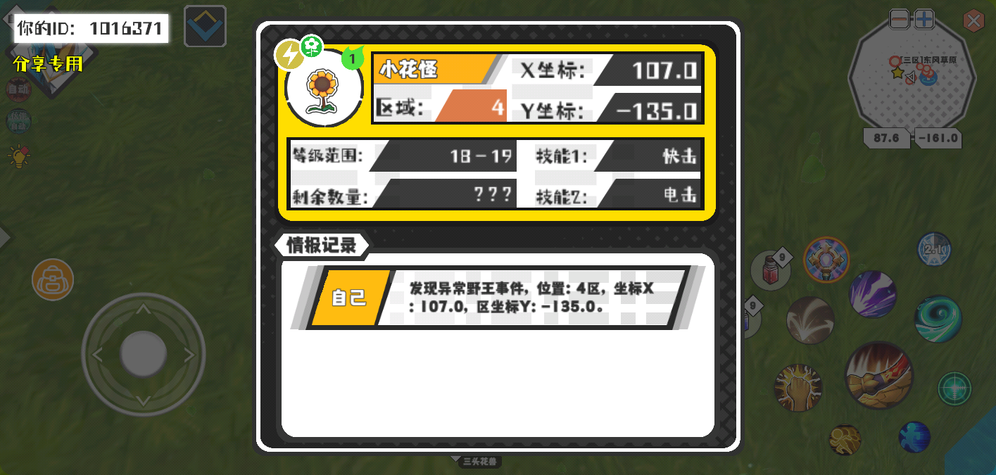 幸运时刻分享! 【野王异常出没】2月5日下午10点 - 小花怪【强度1】 【4区】 【X:107.0, Y:-135.0】
