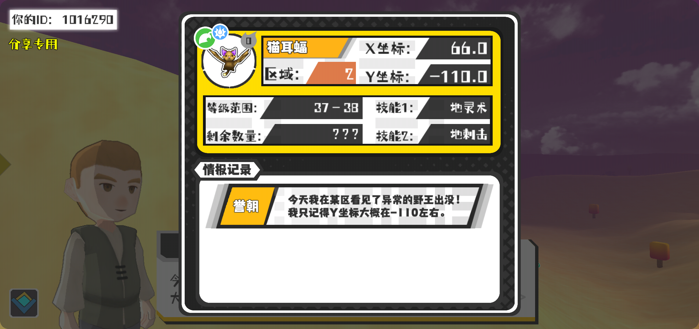 幸运时刻分享! 【野王异常出没】2月5日下午7点 - 猫耳蝠【强度0】 【2区】 【X:66.0, Y:-110.0】