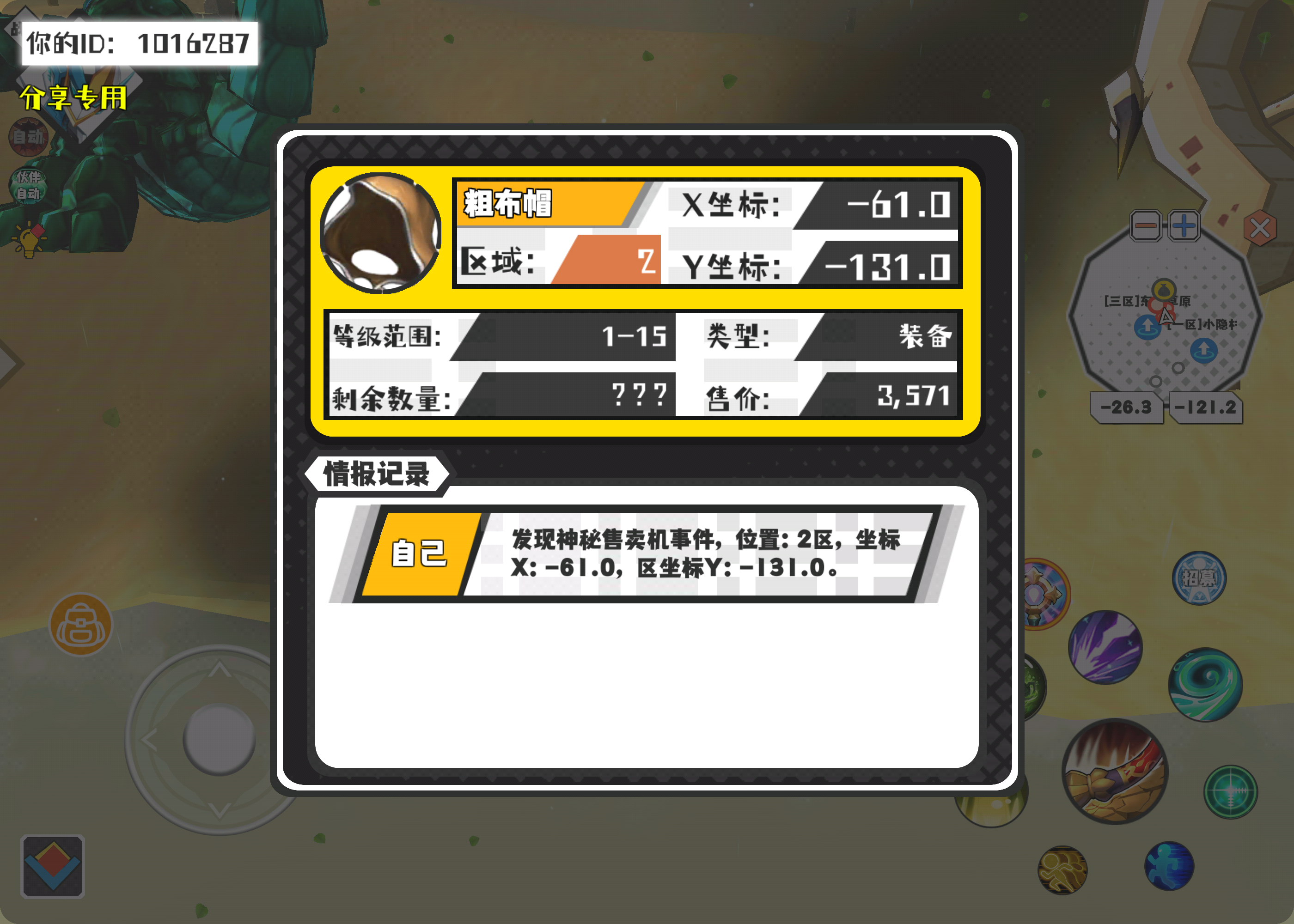 幸运时刻分享! 【神秘售卖机】2月5日下午7点 - 粗布帽【1-15级 】【稀有度:精良】 【2区】 【X:-61.0, Y:-131.0】