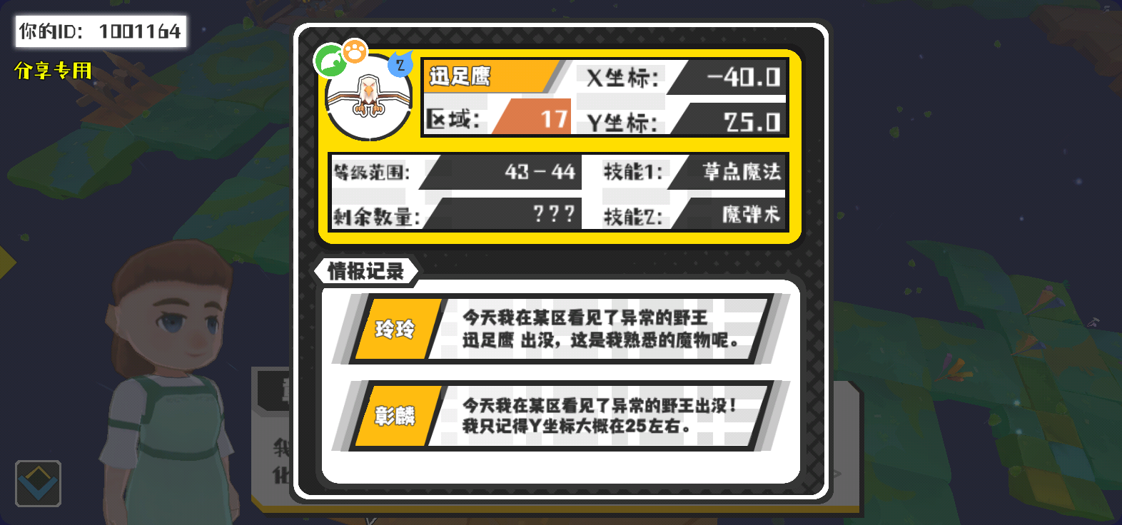 幸运时刻分享! 【野王异常出没】2月5日下午3点 - 迅足鹰【强度2】 【17区】 【X:-40.0, Y:25.0】