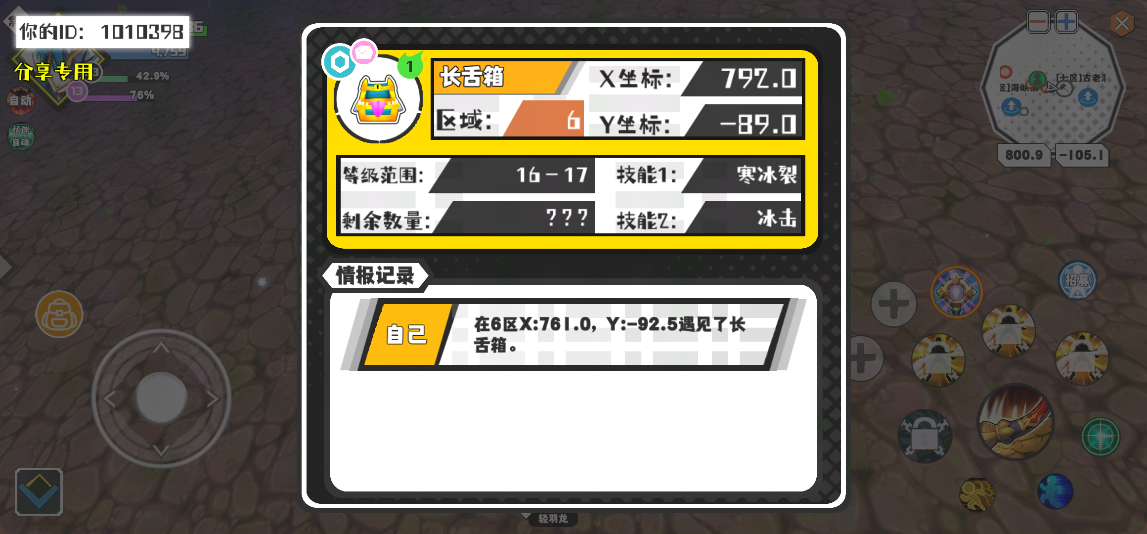 幸运时刻分享! 【魔物异常出没】2月5日下午3点 - 长舌箱【强度1】 【6区】 【X:792.0, Y:-89.0】