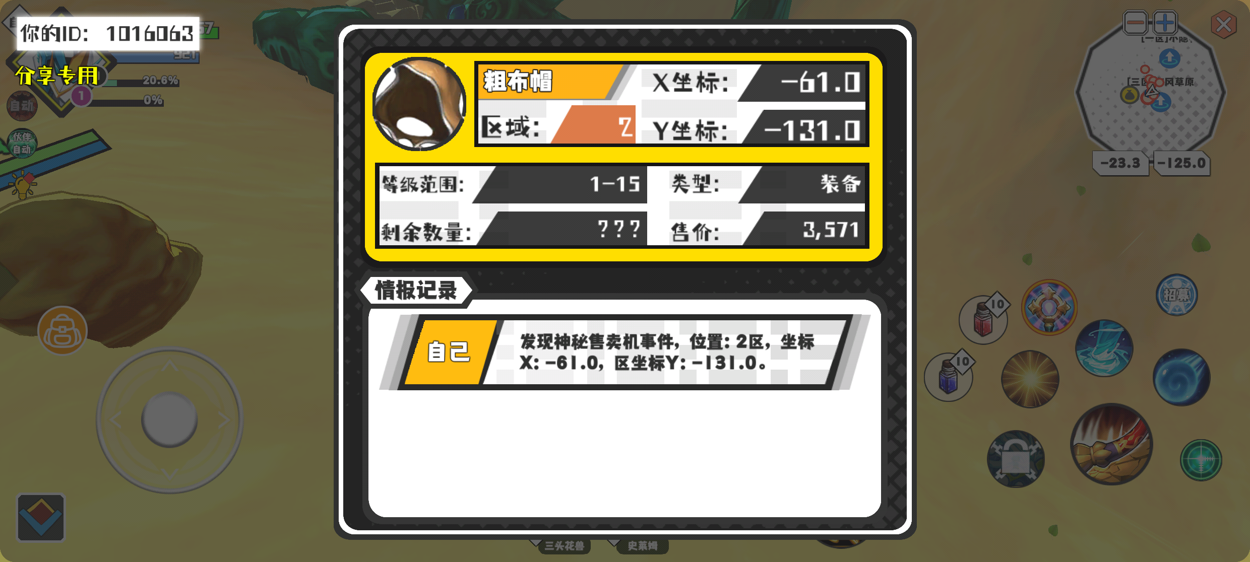 幸运时刻分享! 【神秘售卖机】2月5日上午9点 - 粗布帽【1-15级 】【稀有度:精良】 【2区】 【X:-61.0, Y:-131.0】