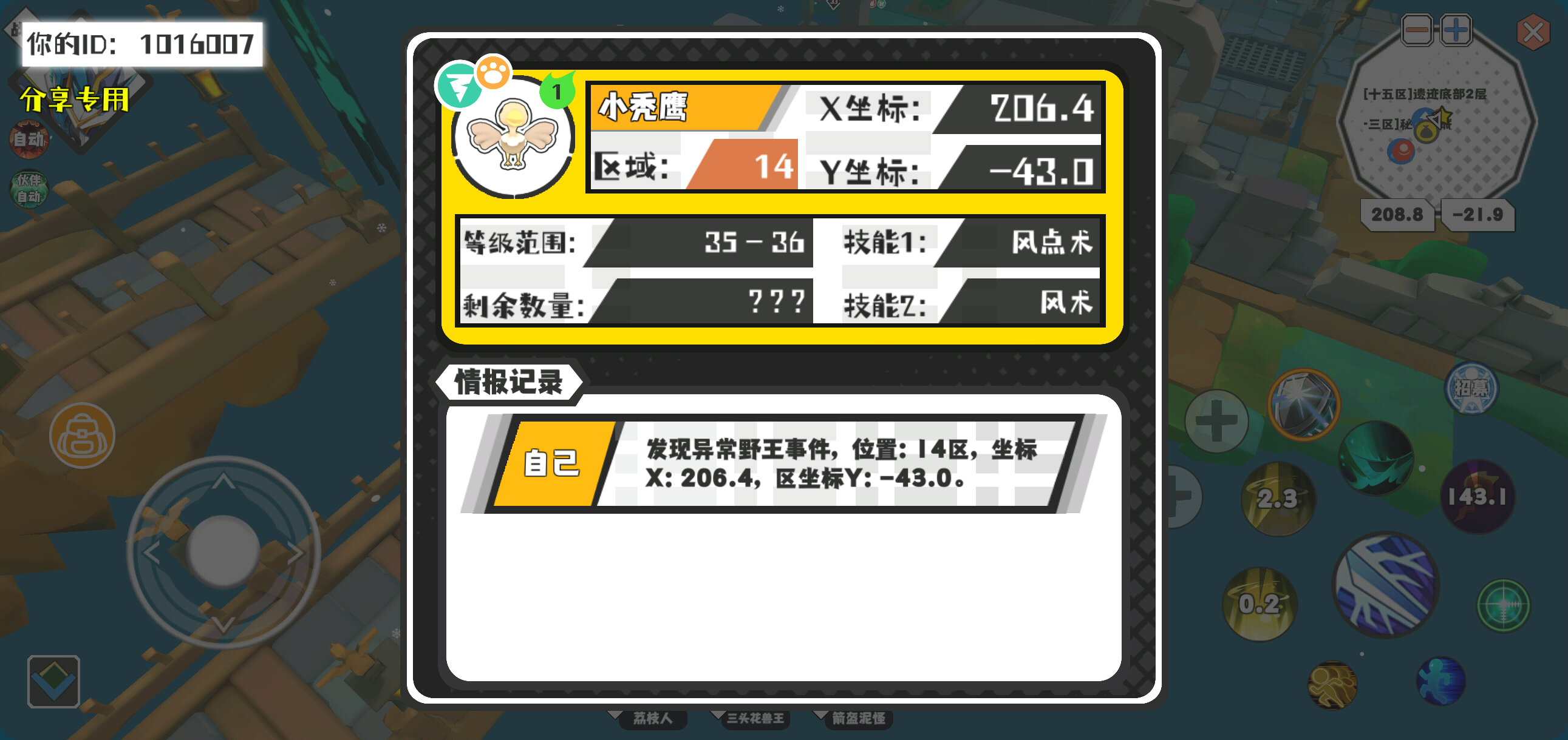 幸运时刻分享! 【野王异常出没】2月5日上午10点 - 小秃鹰【强度1】 【14区】 【X:206.4, Y:-43.0】