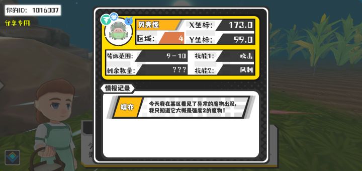 幸运时刻分享! 【魔物异常出没】2月4日下午9点 - 贝壳怪【强度2】 【4区】 【X:173.0, Y:99.0】