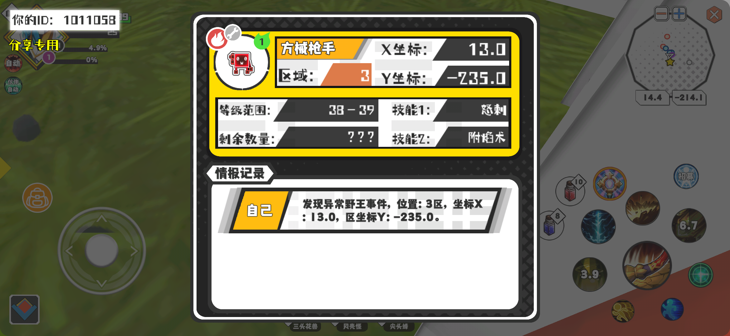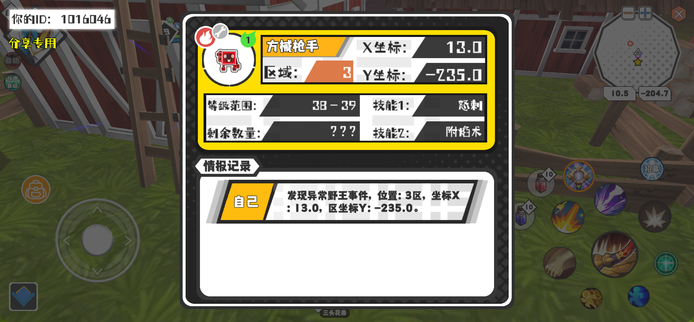 幸运时刻分享! 【野王异常出没】2月4日下午11点 - 方械枪手【强度1】 【3区】 【X:13.0, Y:-235.0】