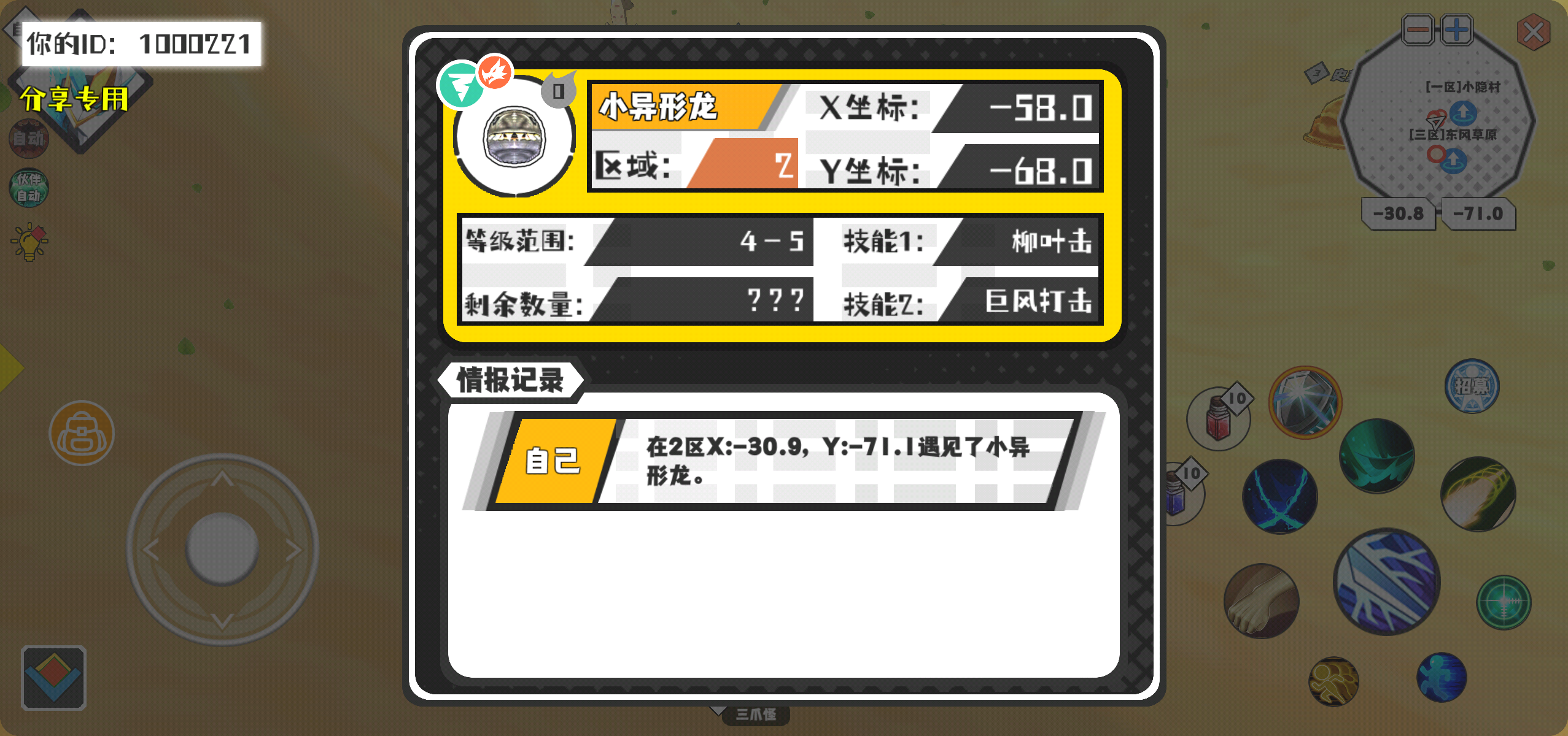 幸运时刻分享! 【魔物异常出没】2月3日下午12点 - 小异形龙【强度0】 【2区】 【X:-58.0, Y:-68.0】