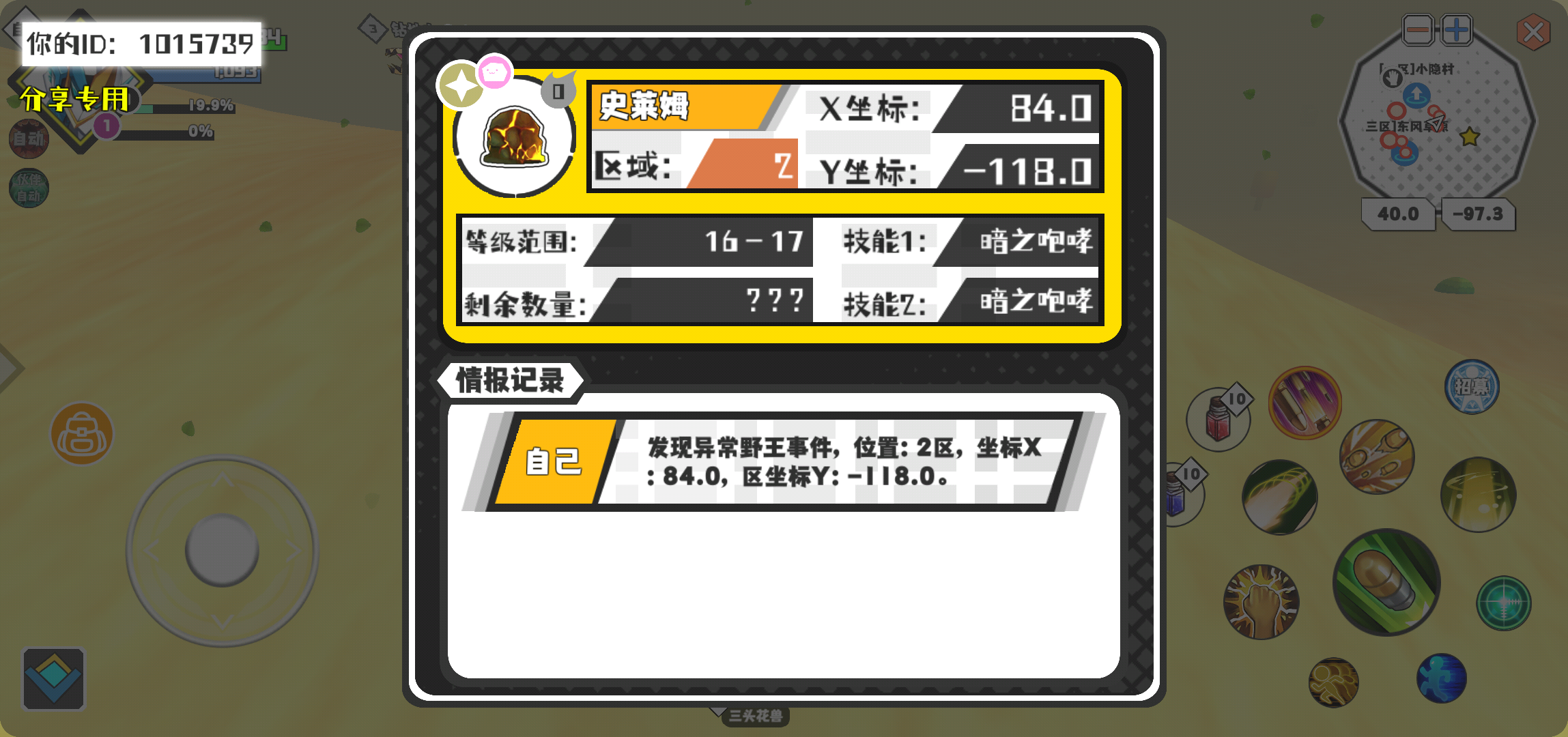 幸运时刻分享! 【野王异常出没】2月3日下午12点 - 史莱姆【强度0】 【2区】 【X:84.0, Y:-118.0】
