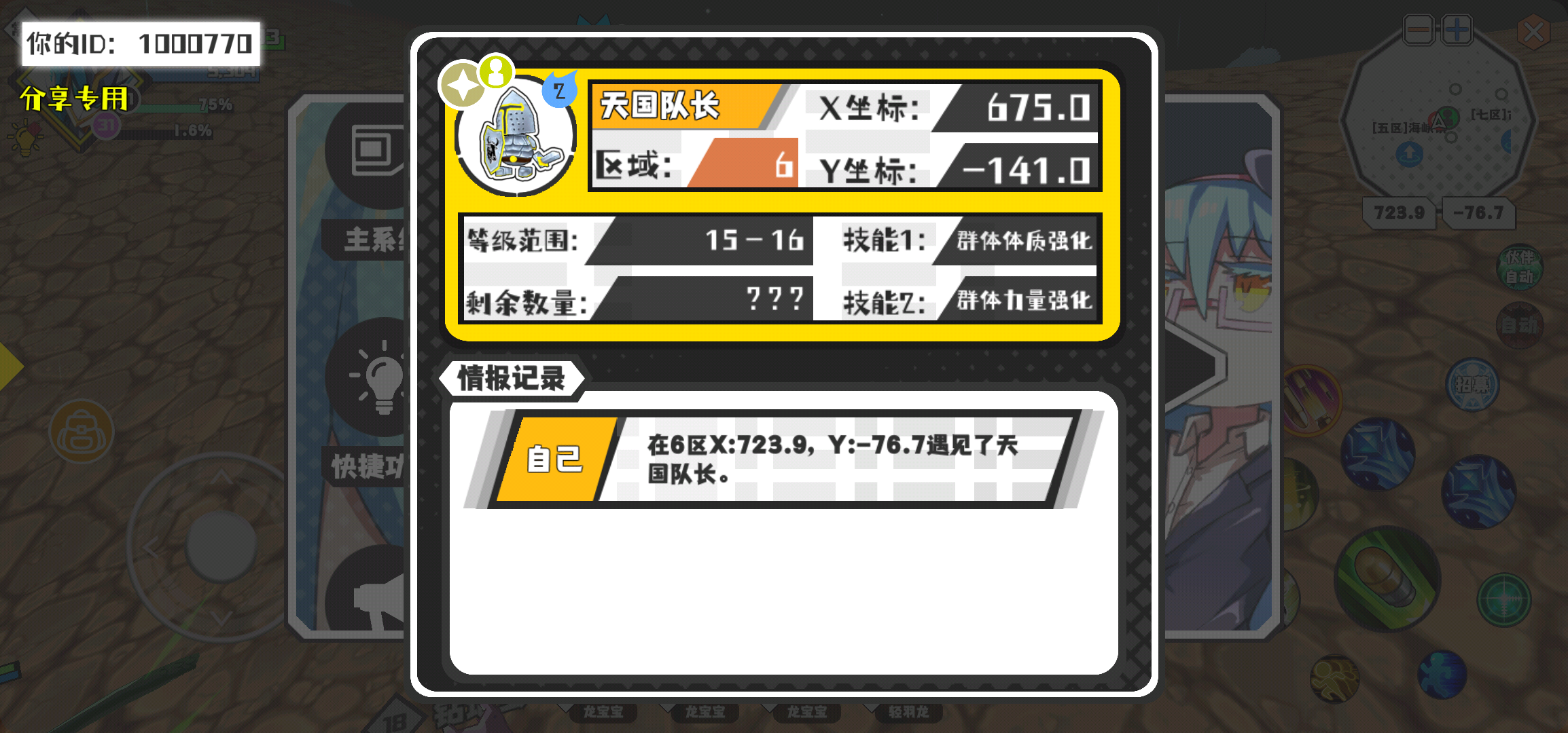 幸运时刻分享! 【魔物异常出没】2月3日下午1点 - 天国队长【强度2】 【6区】 【X:675.0, Y:-141.0】