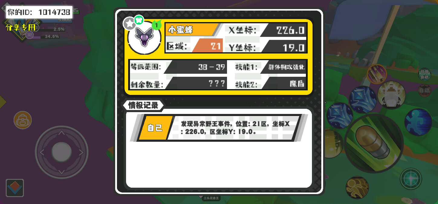 幸运时刻分享! 【野王异常出没】2月3日下午2点 - 小蜜蜂【强度1】 【21区】 【X:226.0, Y:19.0】