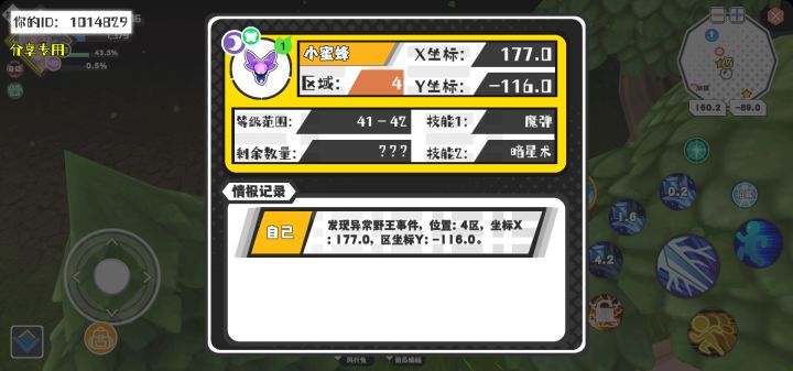 【野王异常出没】12月29日下午10点 - 小蜜蜂【强度1】 【4区】 【X:177.0, Y:-116.0】