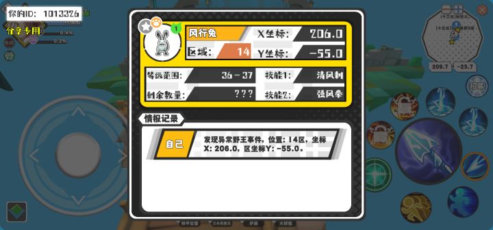 【野王异常出没】12月29日下午12点 - 风行兔【强度1】 【14区】 【X:206.0, Y:-55.0】