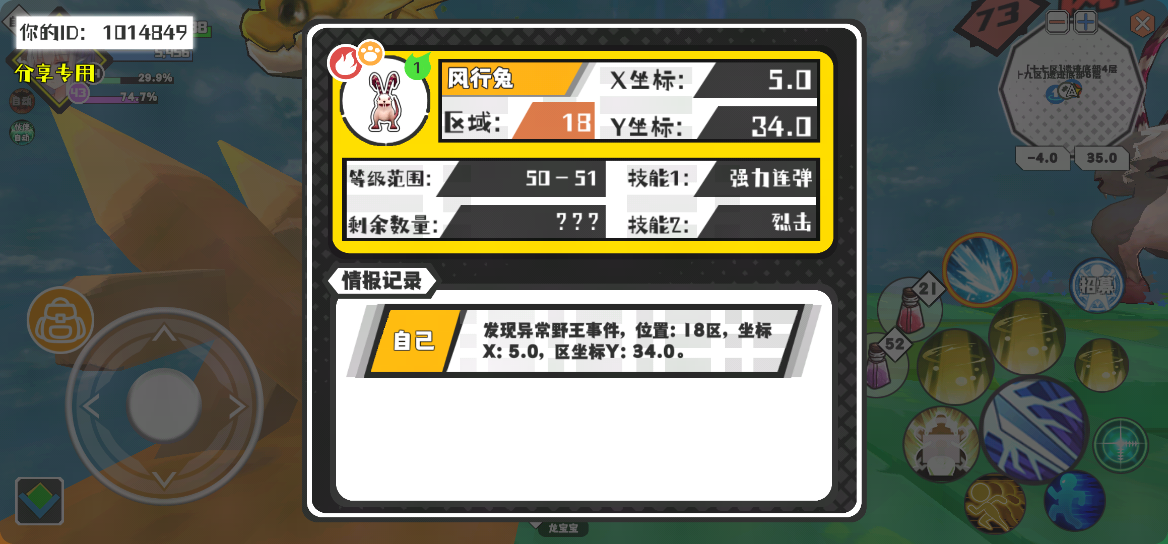 【野王异常出没】12月30日上午12点 - 风行兔【强度1】 【18区】 【X:5.0, Y:34.0】