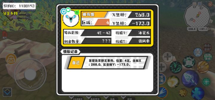 幸运时刻分享! 【野王异常出没】9月10日上午12点 - 蜂鸟怪【强度1】 【4区】 【X:268.0, Y:-173.0】