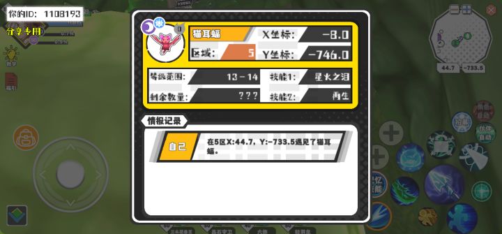 幸运时刻分享! 【魔物异常出没】9月7日上午1点 - 猫耳蝠【强度0】 【5区】 【X:-8.0, Y:-746.0】