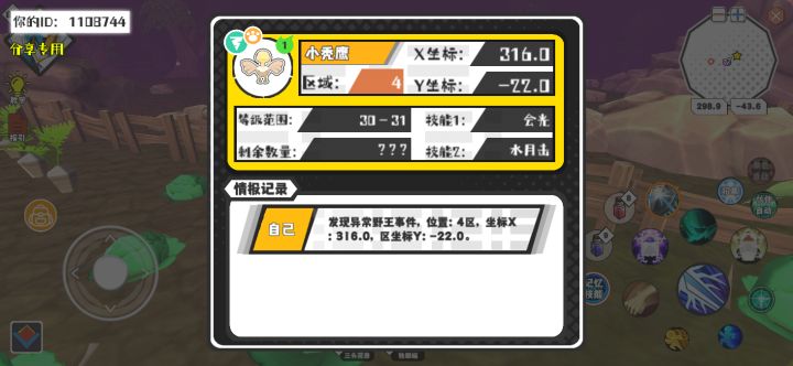 幸运时刻分享! 【野王异常出没】9月5日下午11点 - 小秃鹰【强度1】 【4区】 【X:316.0, Y:-22.0】