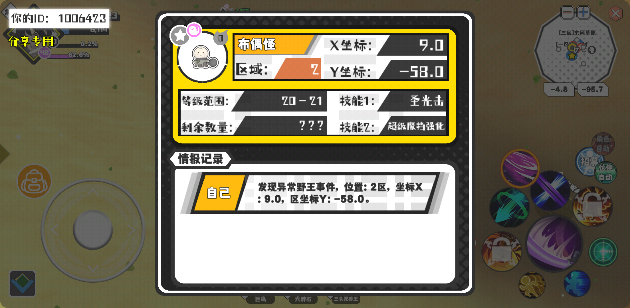 幸运时刻分享! 【野王异常出没】4月3日下午10点 - 布偶怪【强度0】 【2区】 【X:9.0, Y:-58.0】