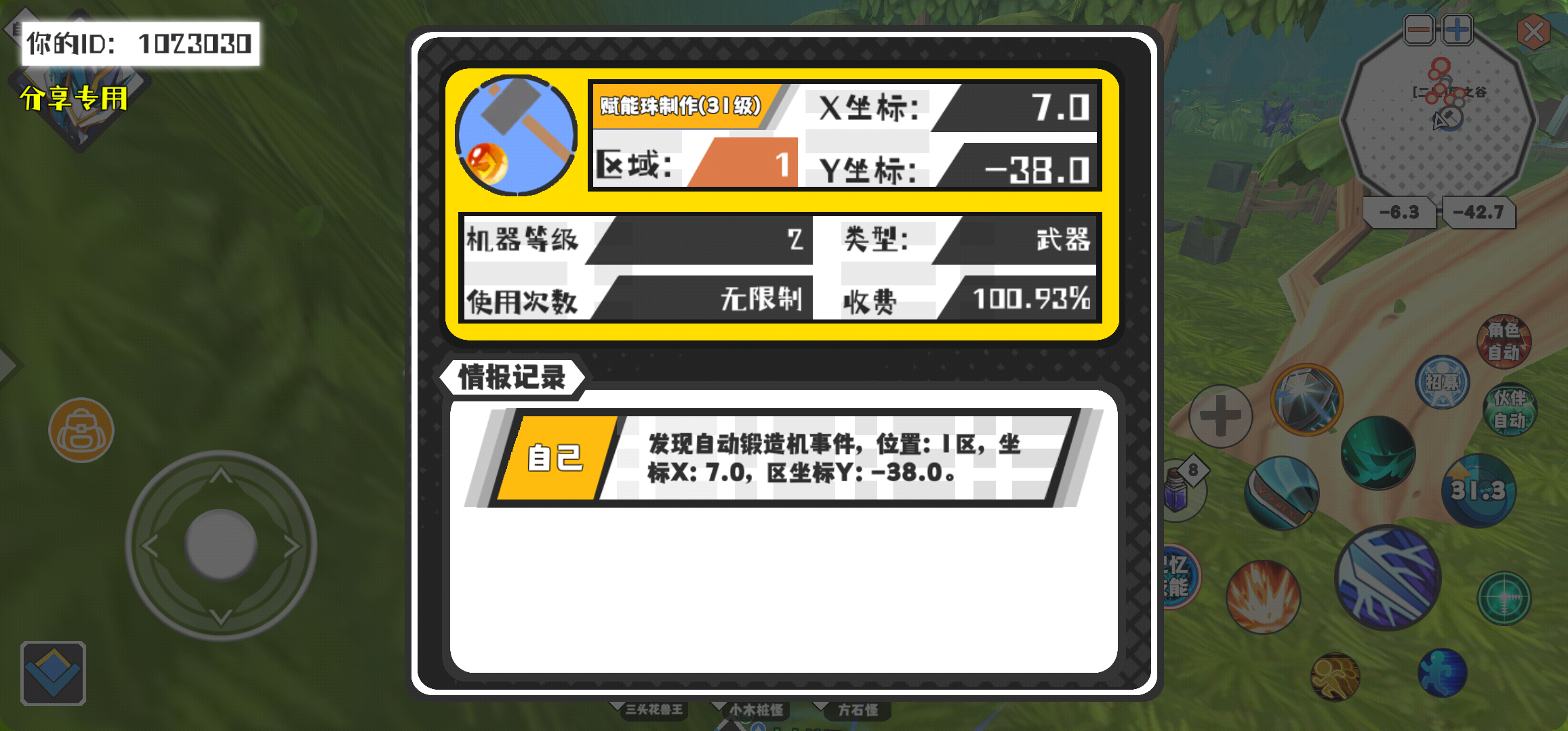 幸运时刻分享! 【自动锻造机】4月3日上午9点 - 赋能珠制作(31级)【2级机器】 【1区】 【X:7.0, Y:-38.0】
