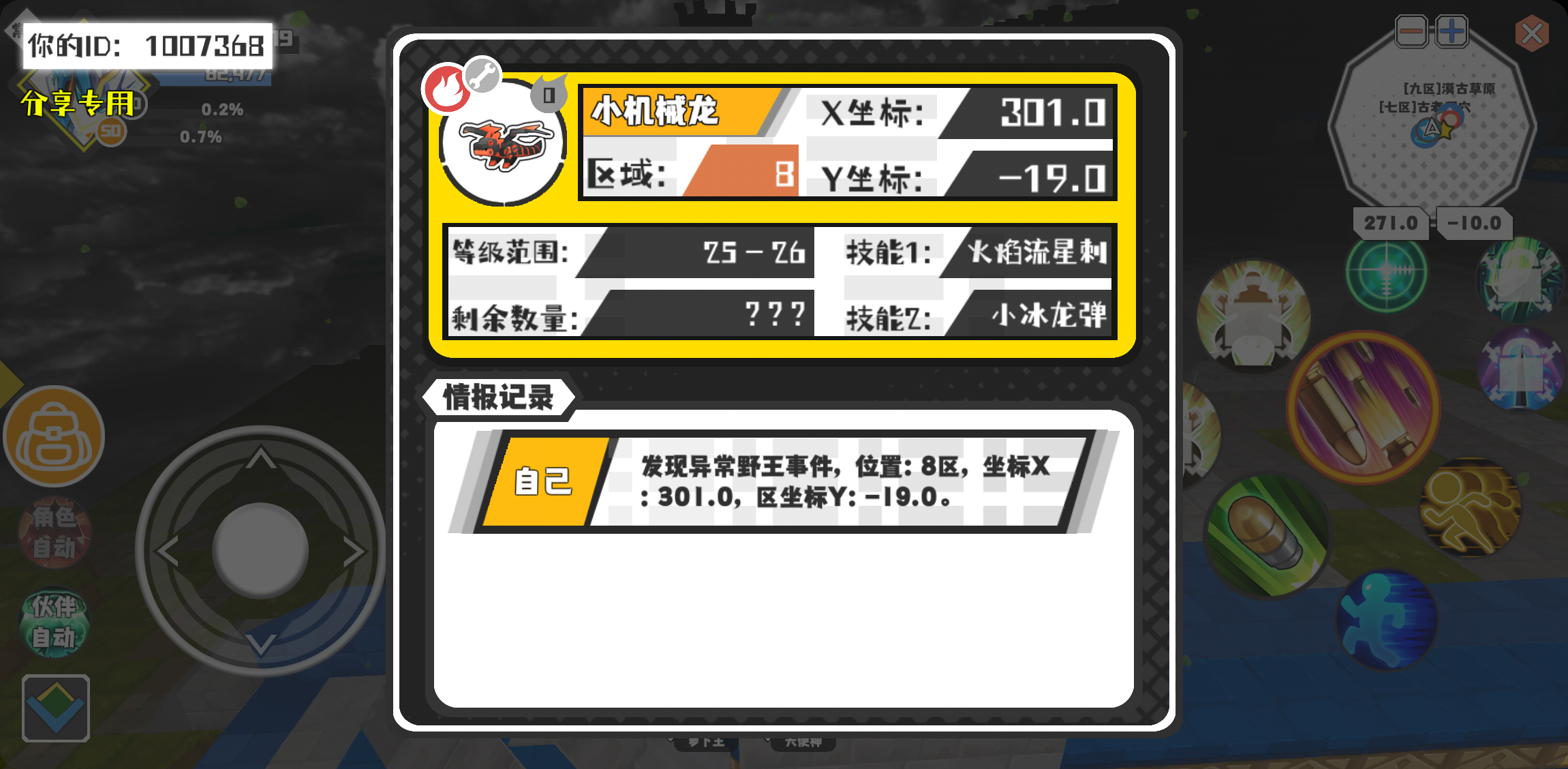 幸运时刻分享! 【野王异常出没】4月3日下午9点 - 小机械龙【强度0】 【8区】 【X:301.0, Y:-19.0】
