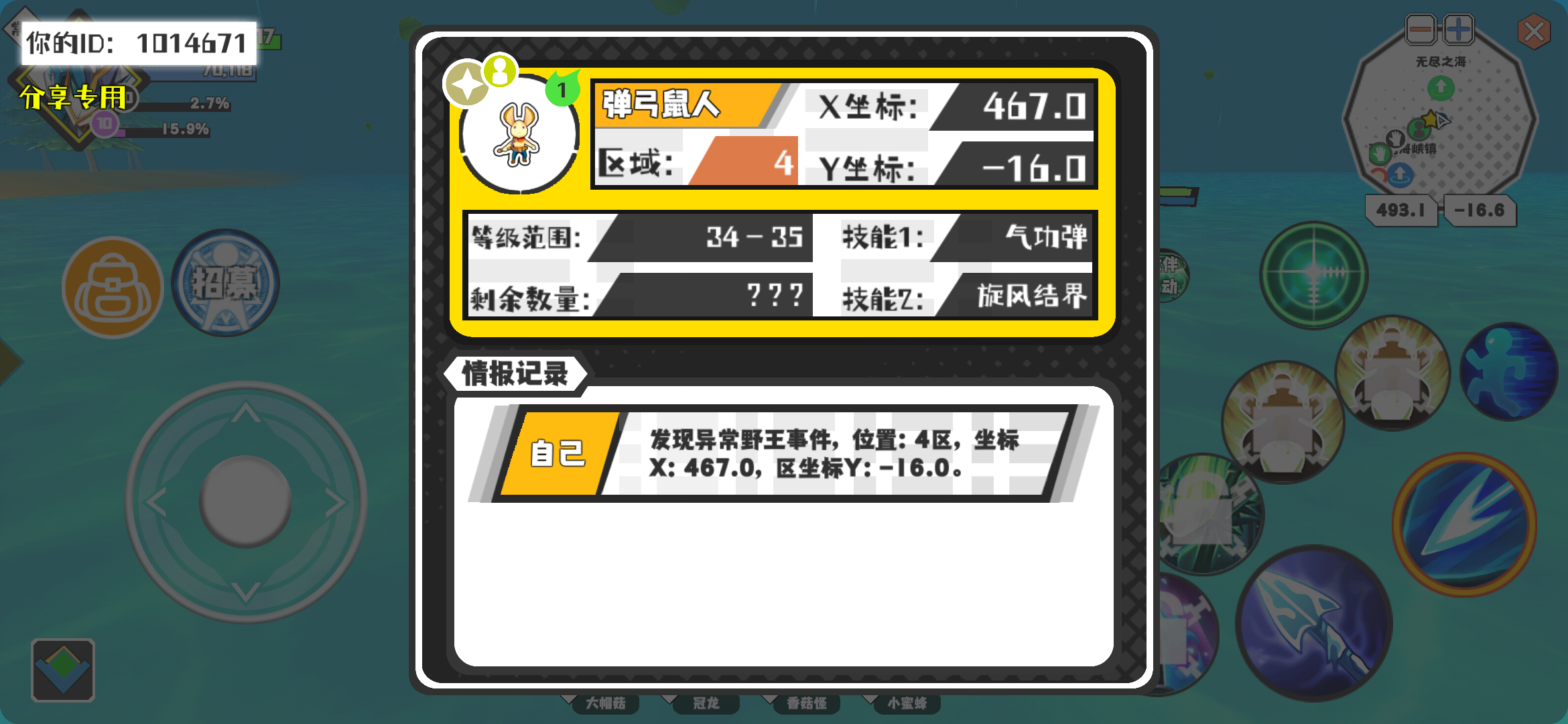 幸运时刻分享! 【野王异常出没】4月3日上午9点 - 弹弓鼠人【强度1】 【4区】 【X:467.0, Y:-16.0】