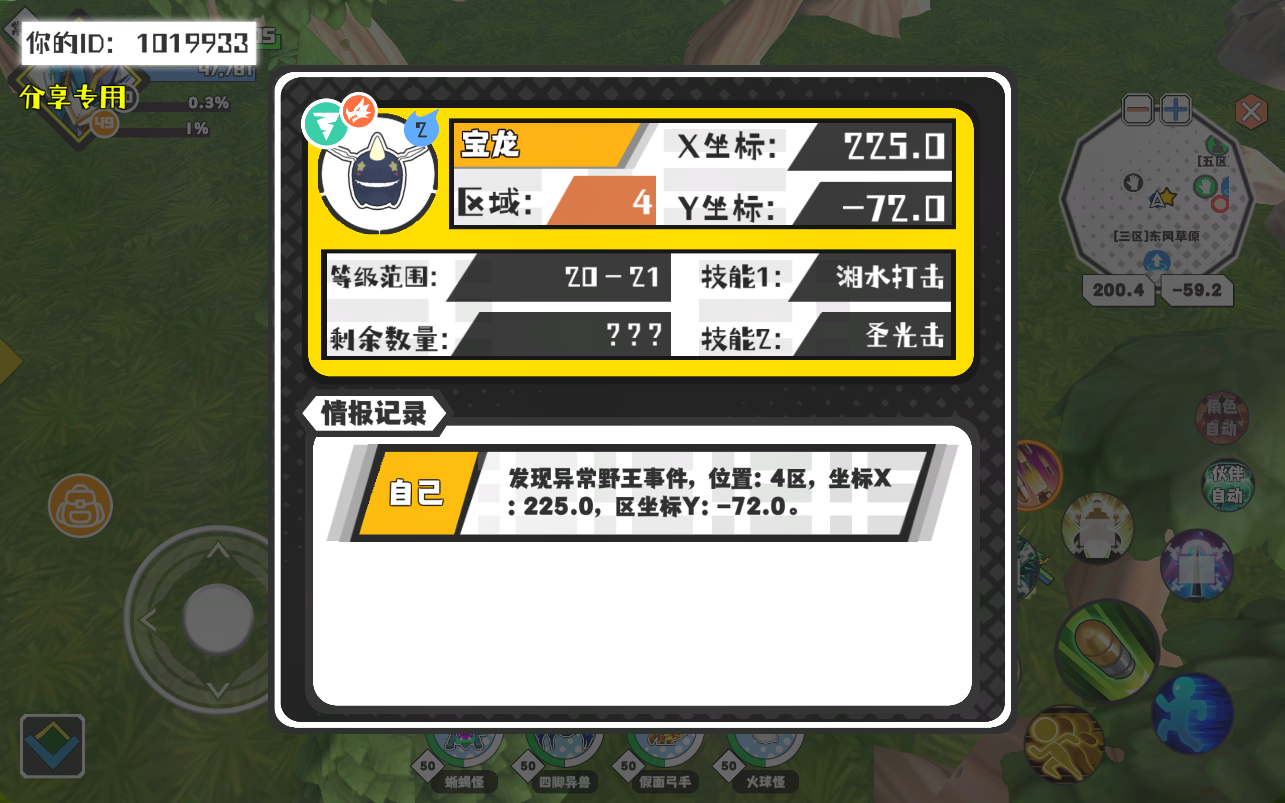 幸运时刻分享! 【野王异常出没】4月2日下午8点 - 宝龙【强度2】 【4区】 【X:225.0, Y:-72.0】
