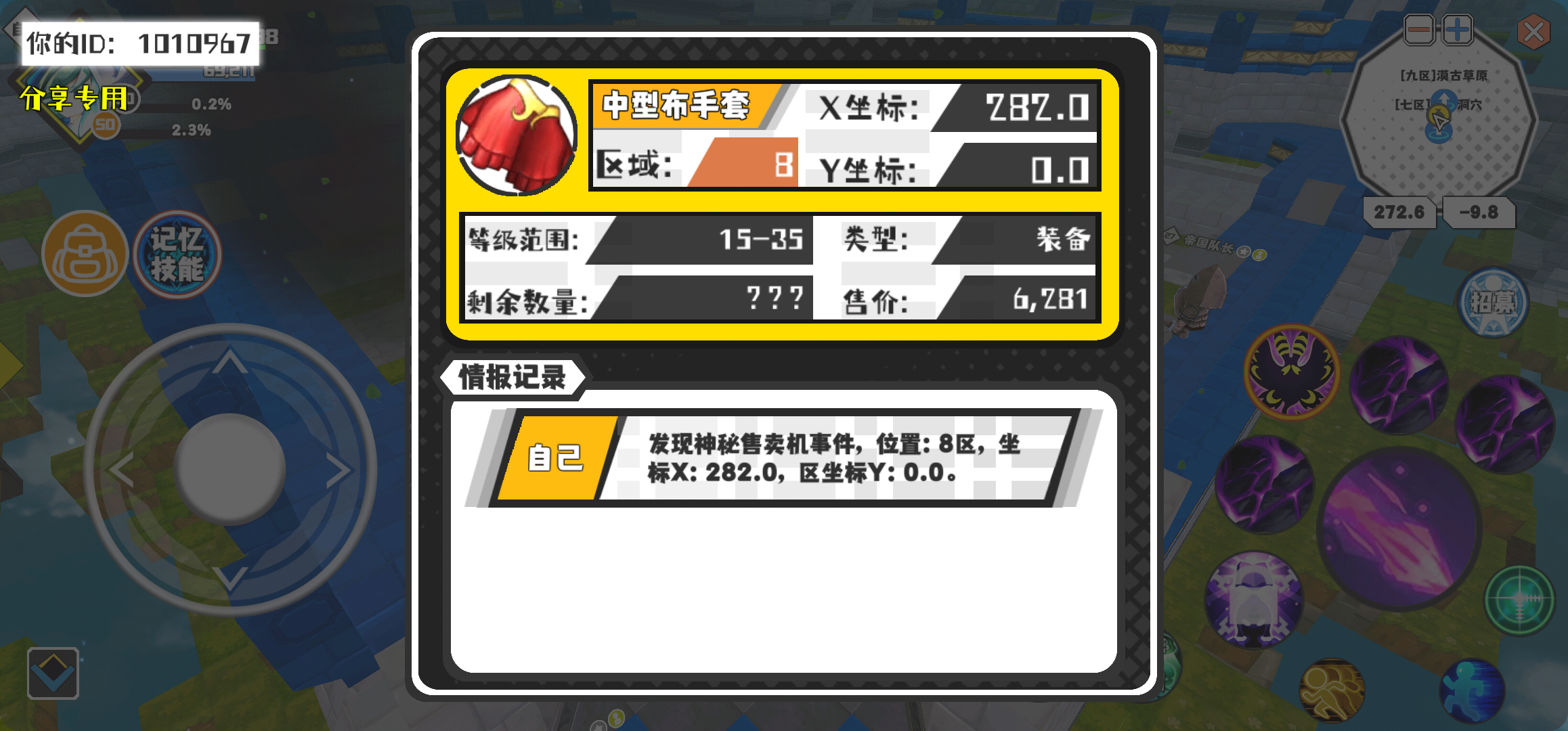 幸运时刻分享! 【神秘售卖机】4月2日下午9点 - 中型布手套【15-35级 】【稀有度:精良】 【8区】 【X:282.0, Y:0.0】