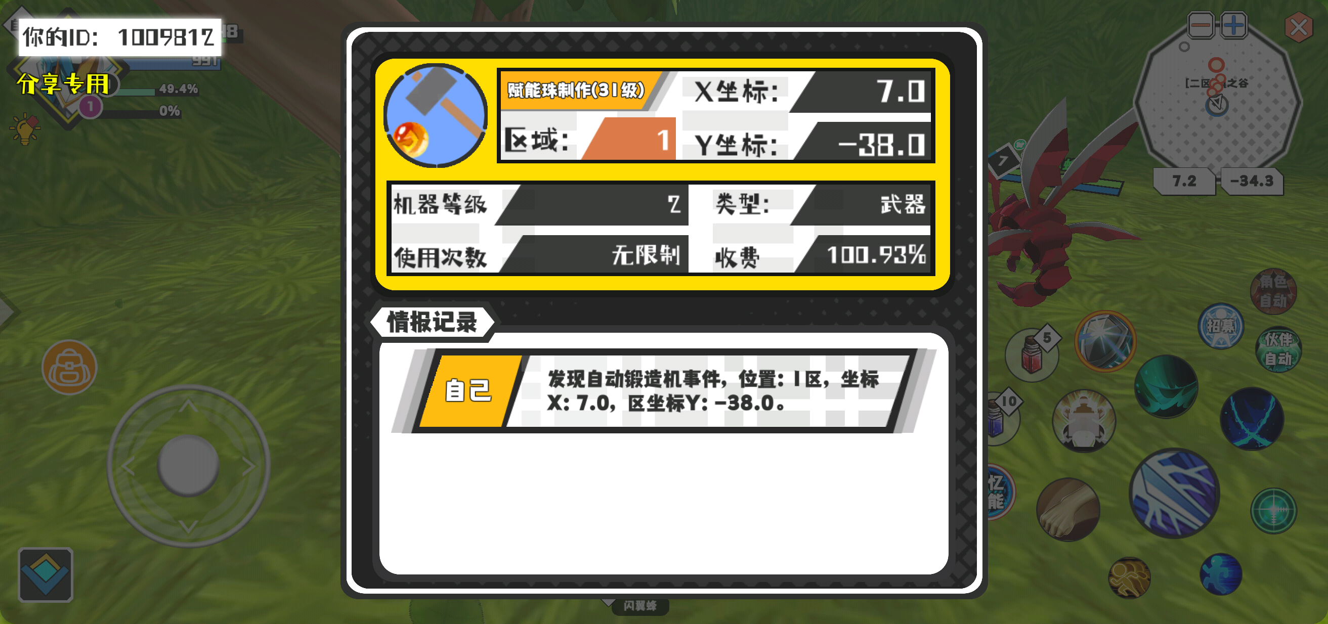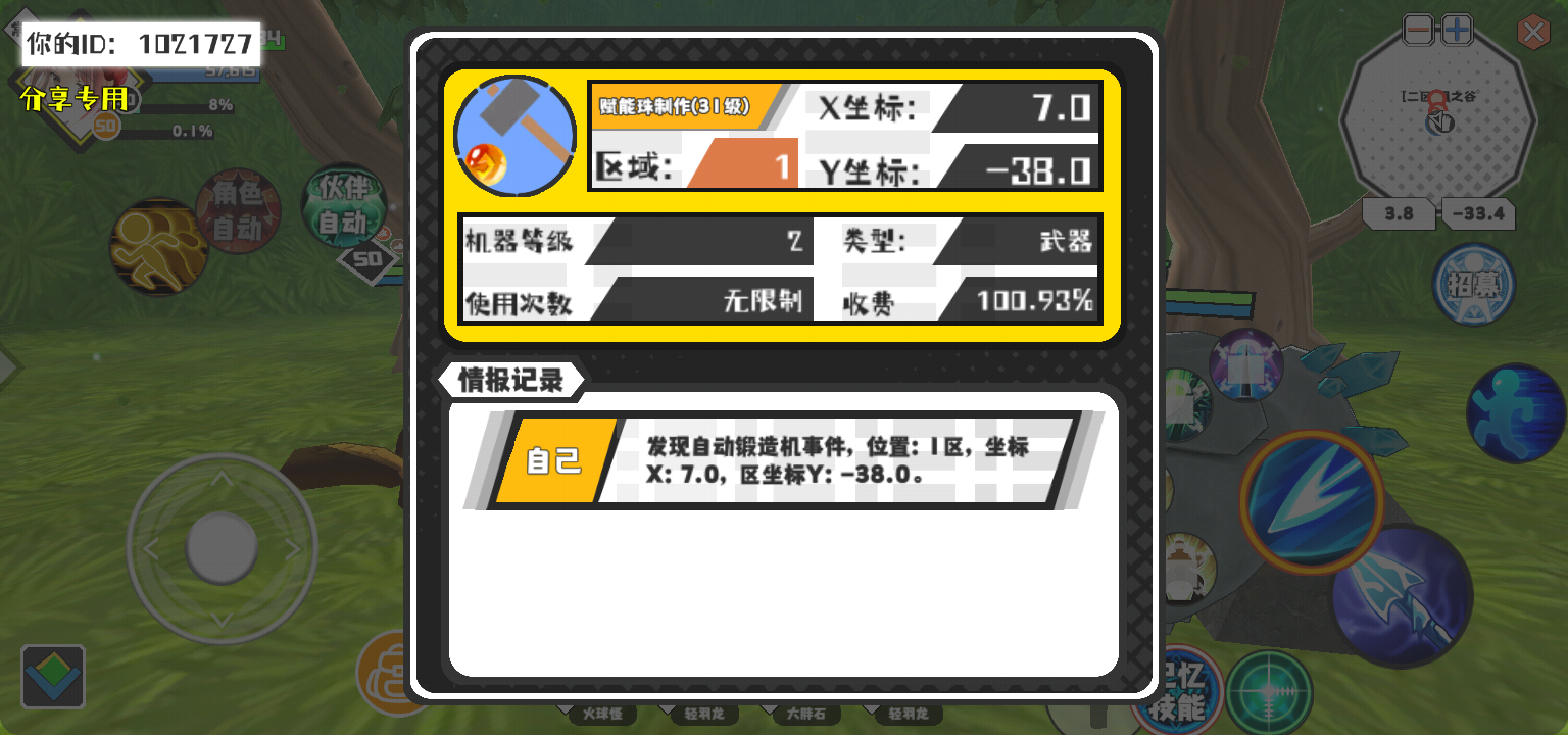 幸运时刻分享! 【自动锻造机】4月2日下午9点 - 赋能珠制作(31级)【2级机器】 【1区】 【X:7.0, Y:-38.0】