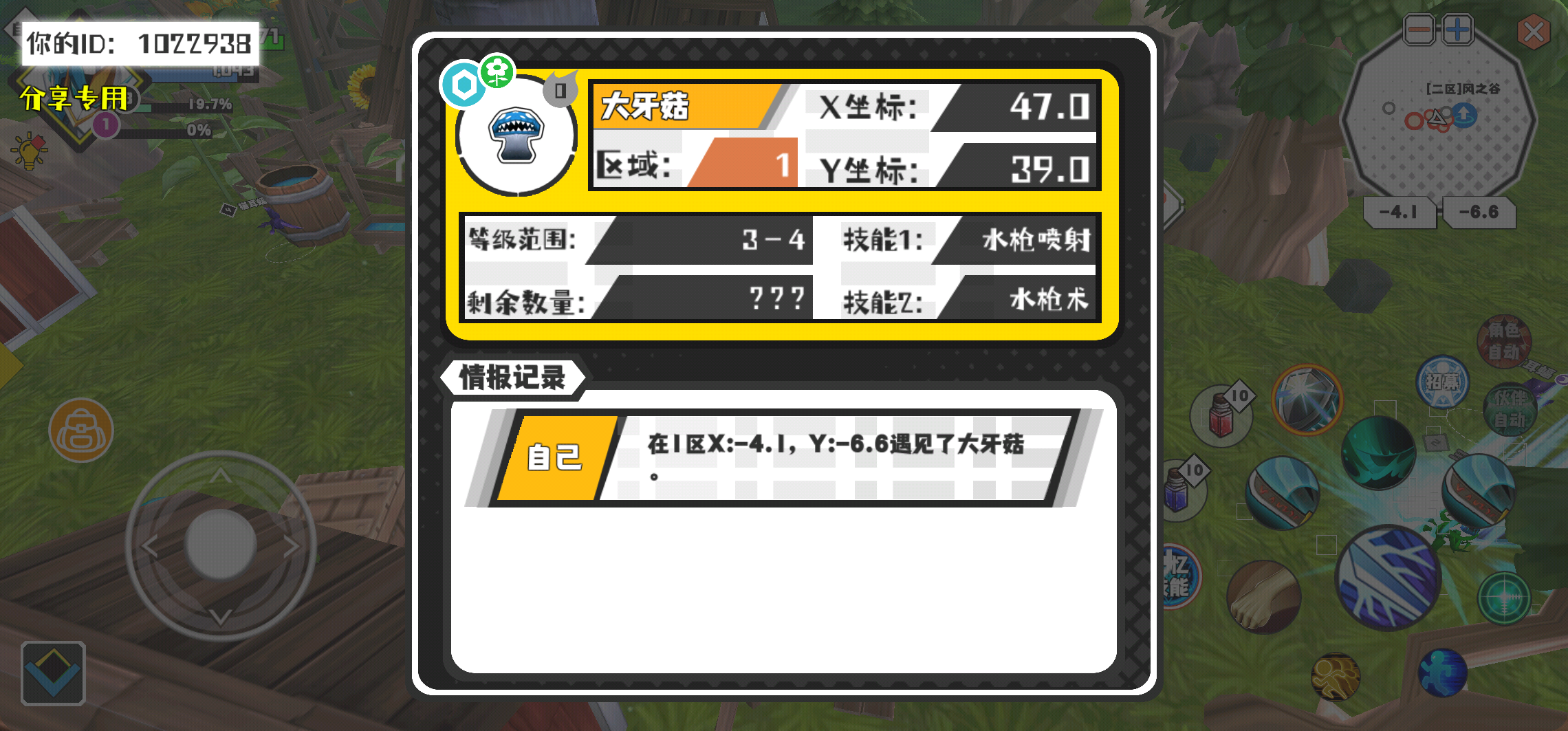 幸运时刻分享! 【魔物异常出没】4月3日上午12点 - 大牙菇【强度0】 【1区】 【X:47.0, Y:39.0】