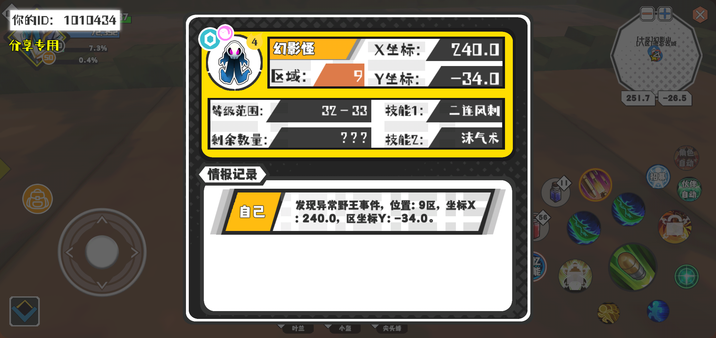 幸运时刻分享! 【野王异常出没】4月1日下午5点 - 幻影怪【强度4】 【9区】 【X:240.0, Y:-34.0】