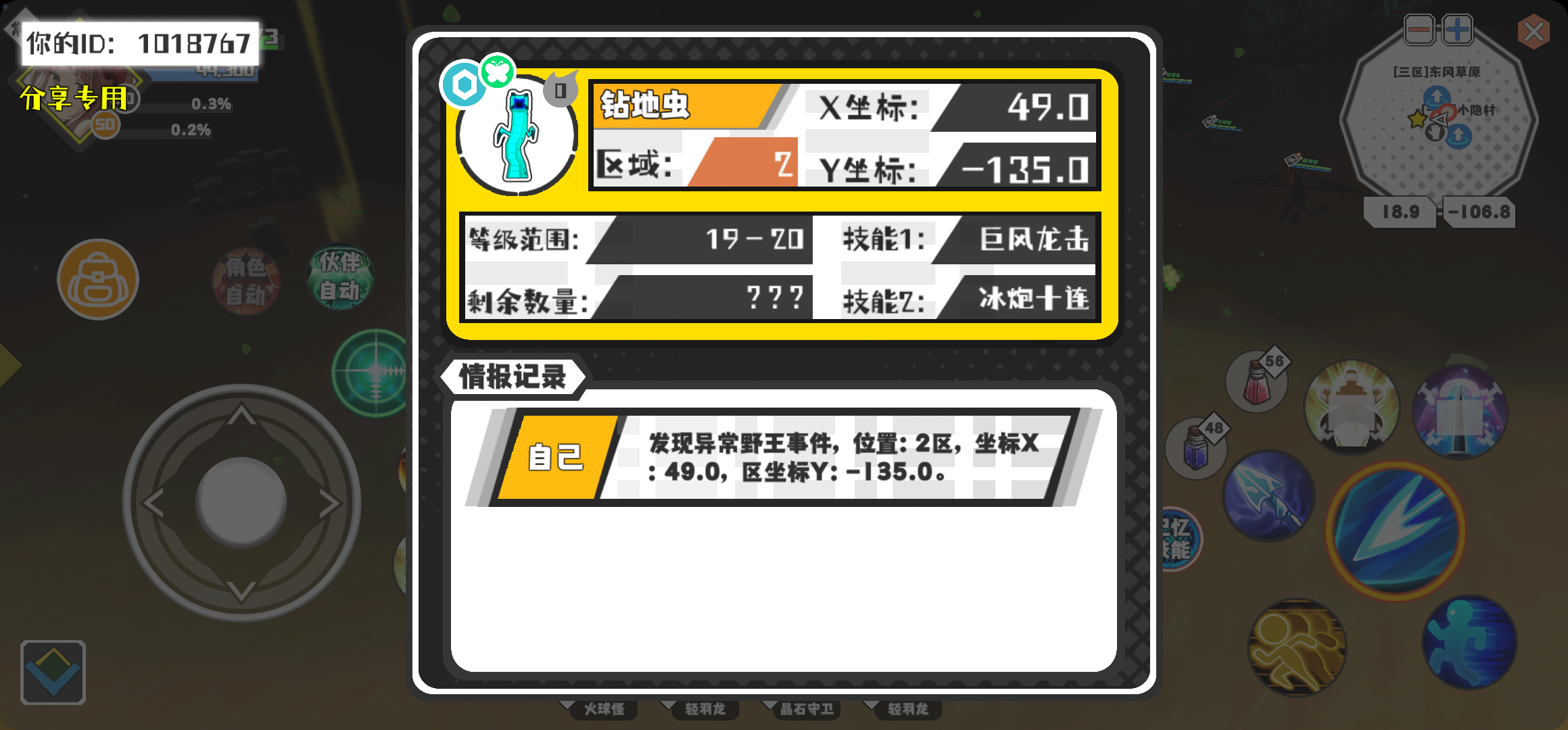 幸运时刻分享! 【野王异常出没】4月1日下午9点 - 钻地虫【强度0】 【2区】 【X:49.0, Y:-135.0】