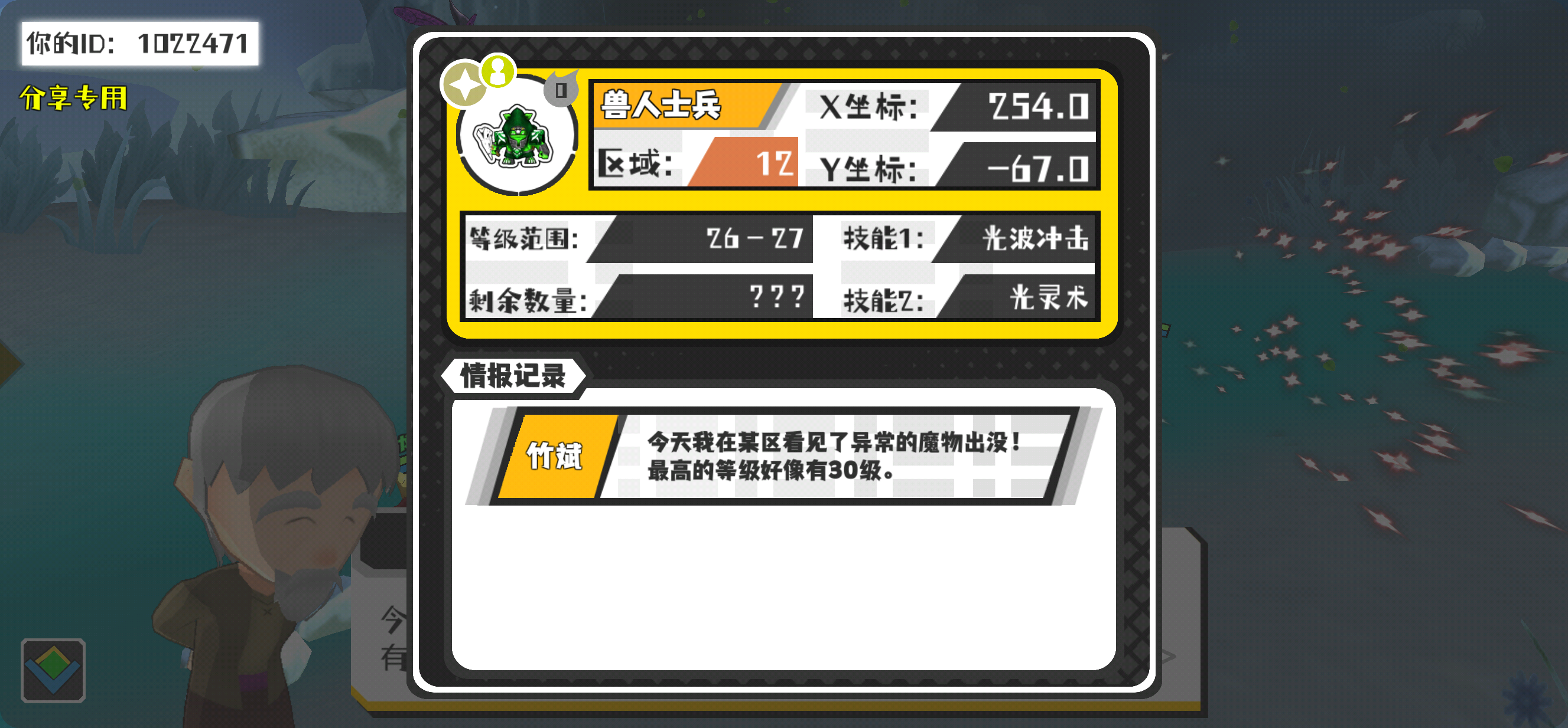 幸运时刻分享! 【魔物异常出没】4月1日下午9点 - 兽人士兵【强度0】 【12区】 【X:254.0, Y:-67.0】
