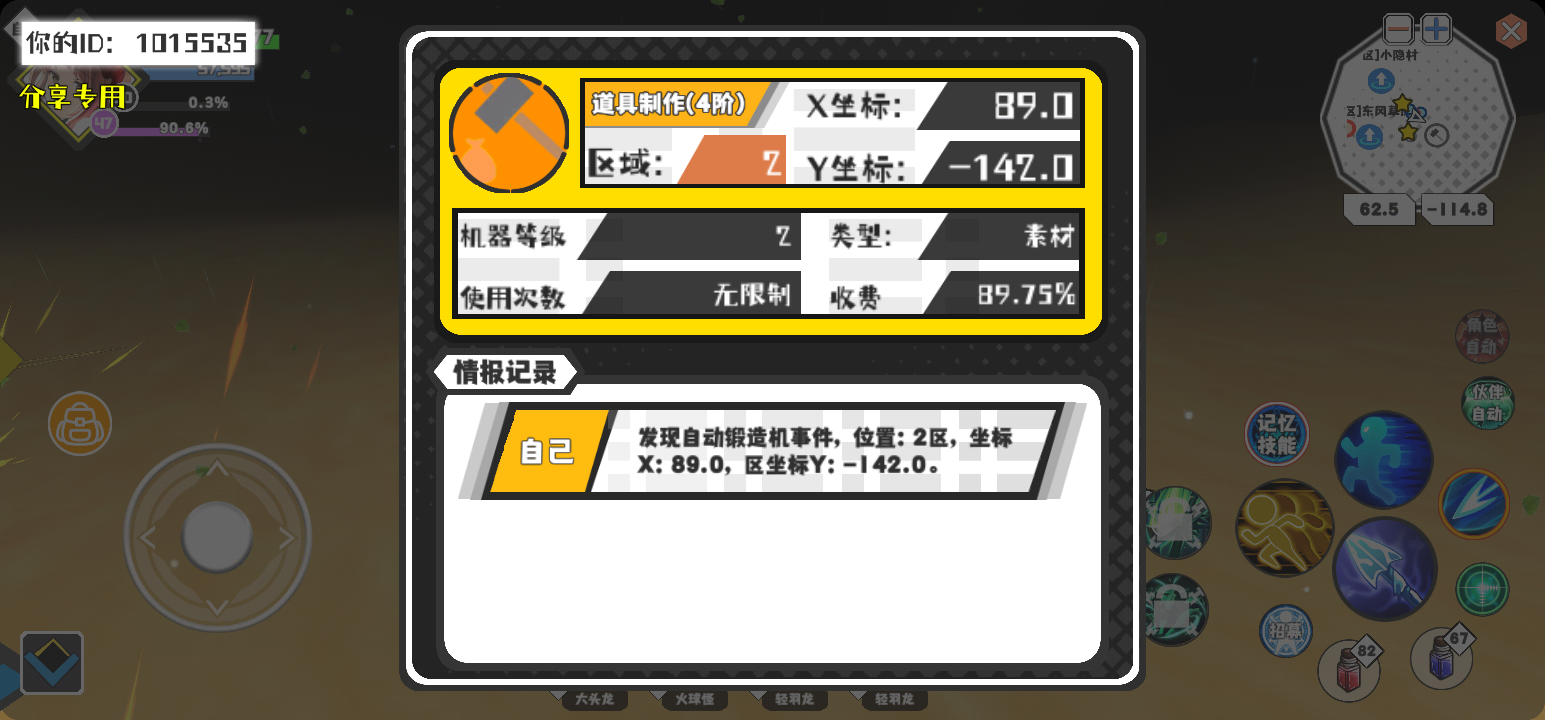 幸运时刻分享! 【自动锻造机】4月1日下午11点 - 道具制作(4阶)【2级机器】 【2区】 【X:89.0, Y:-142.0】