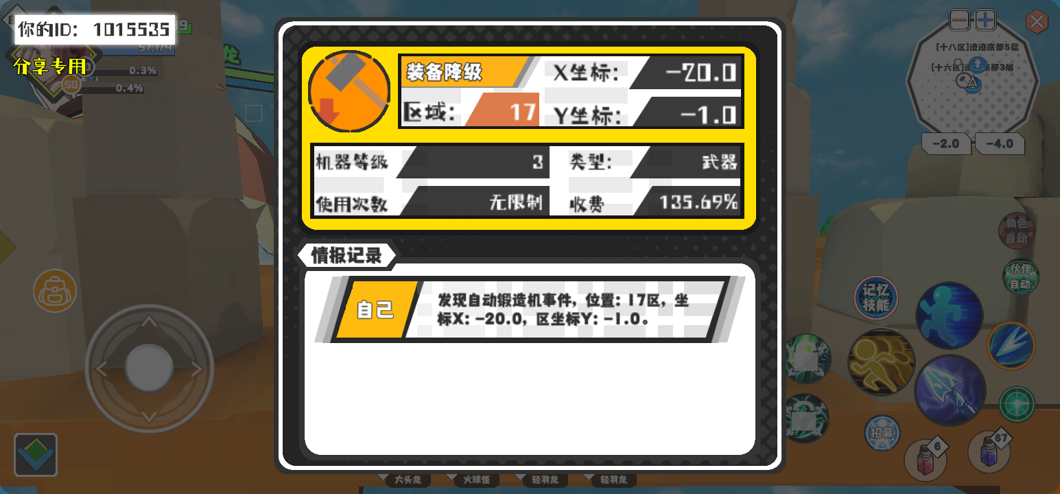 幸运时刻分享! 【自动锻造机】4月1日上午10点 - 装备降级【3级机器】 【17区】 【X:-20.0, Y:-1.0】