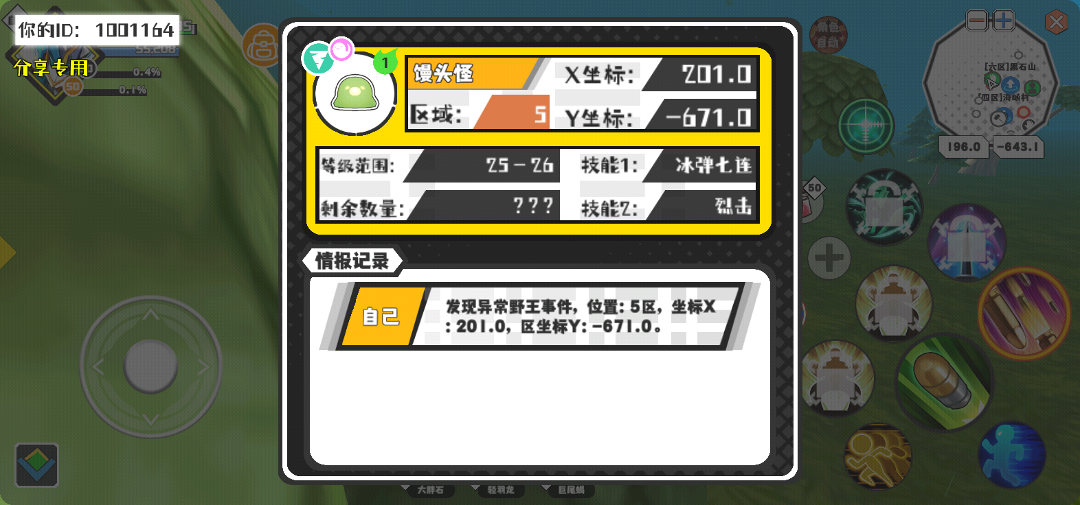 幸运时刻分享! 【野王异常出没】4月1日下午3点 - 馒头怪【强度1】 【5区】 【X:201.0, Y:-671.0】