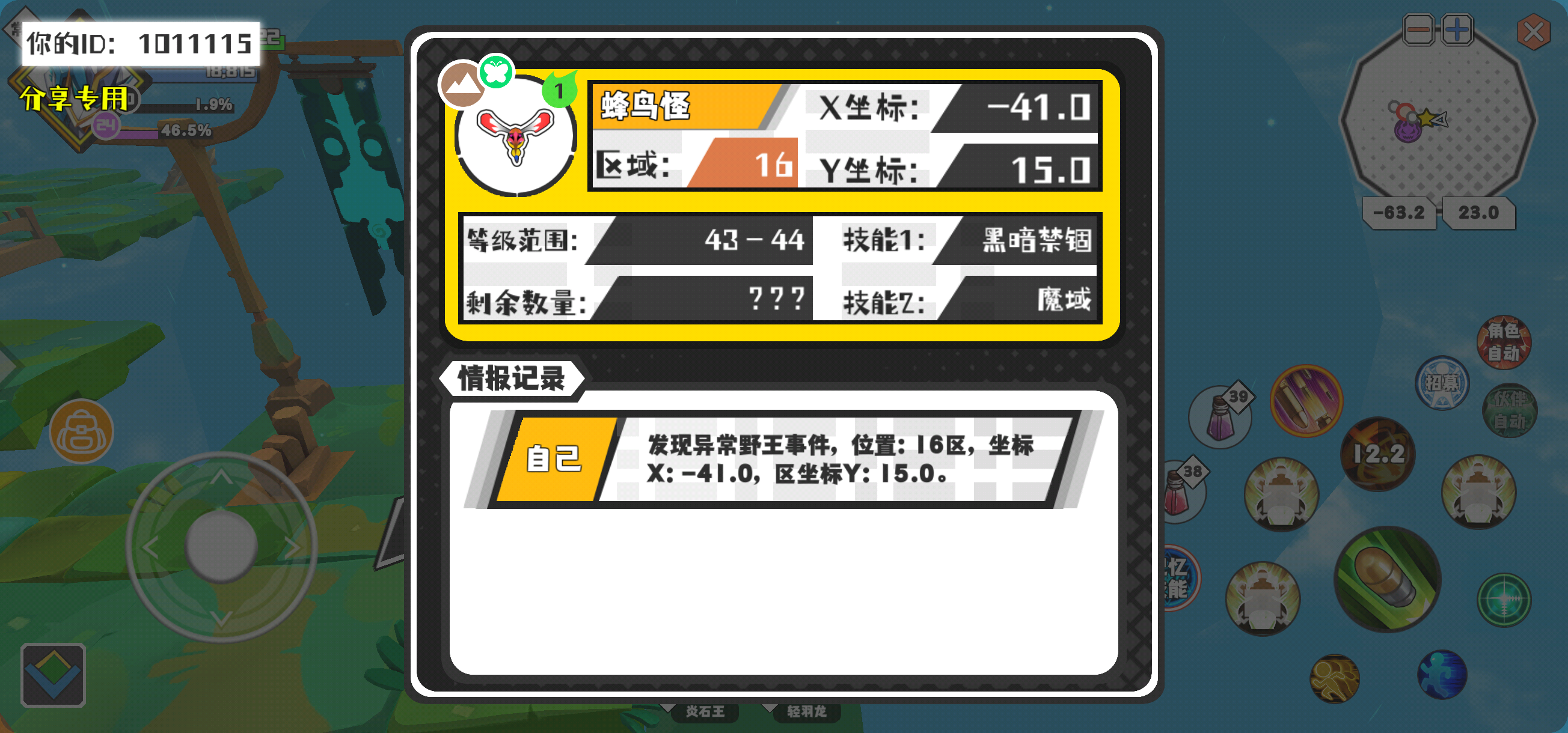 幸运时刻分享! 【野王异常出没】3月31日下午11点 - 蜂鸟怪【强度1】 【16区】 【X:-41.0, Y:15.0】