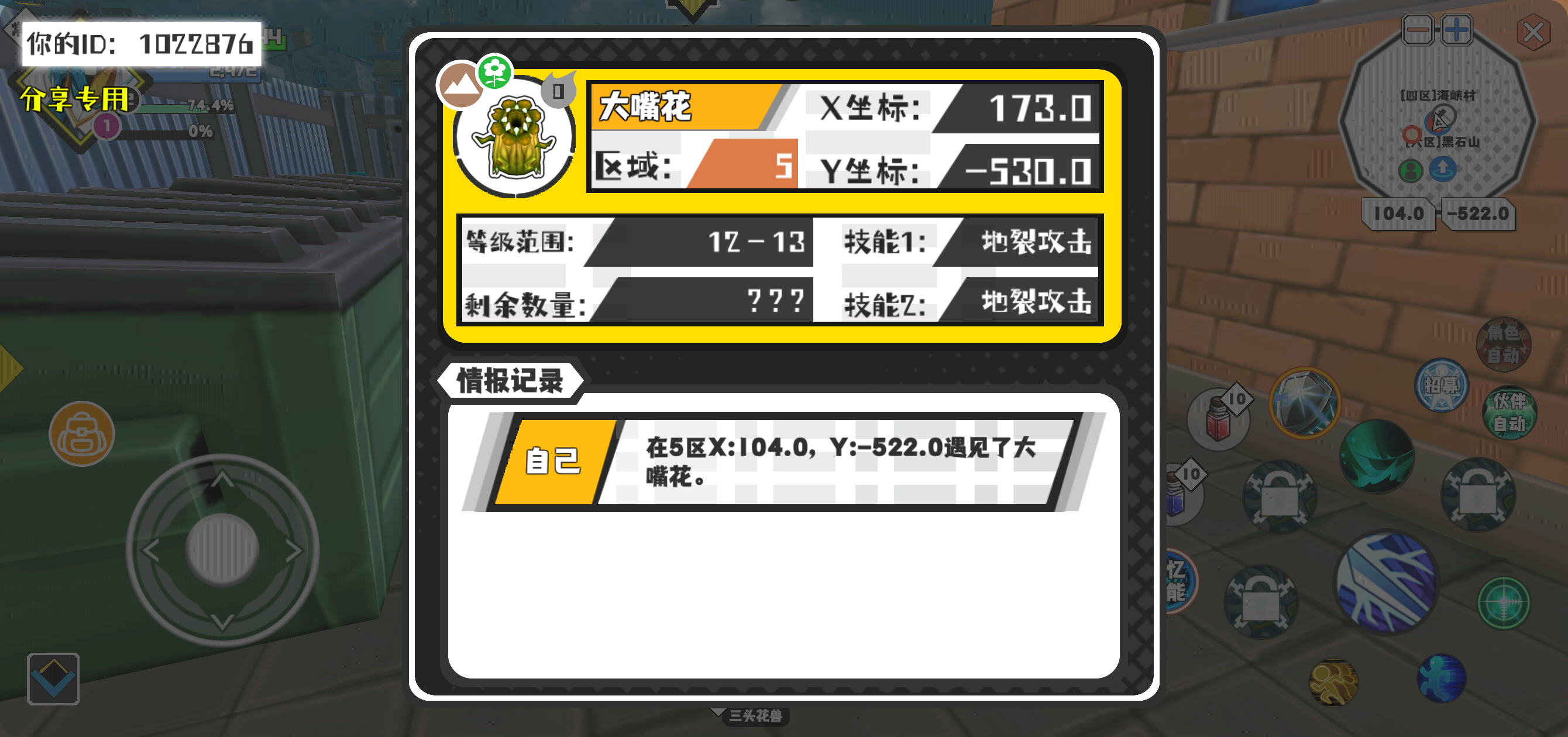 幸运时刻分享! 【魔物异常出没】3月31日下午8点 - 大嘴花【强度0】 【5区】 【X:173.0, Y:-530.0】