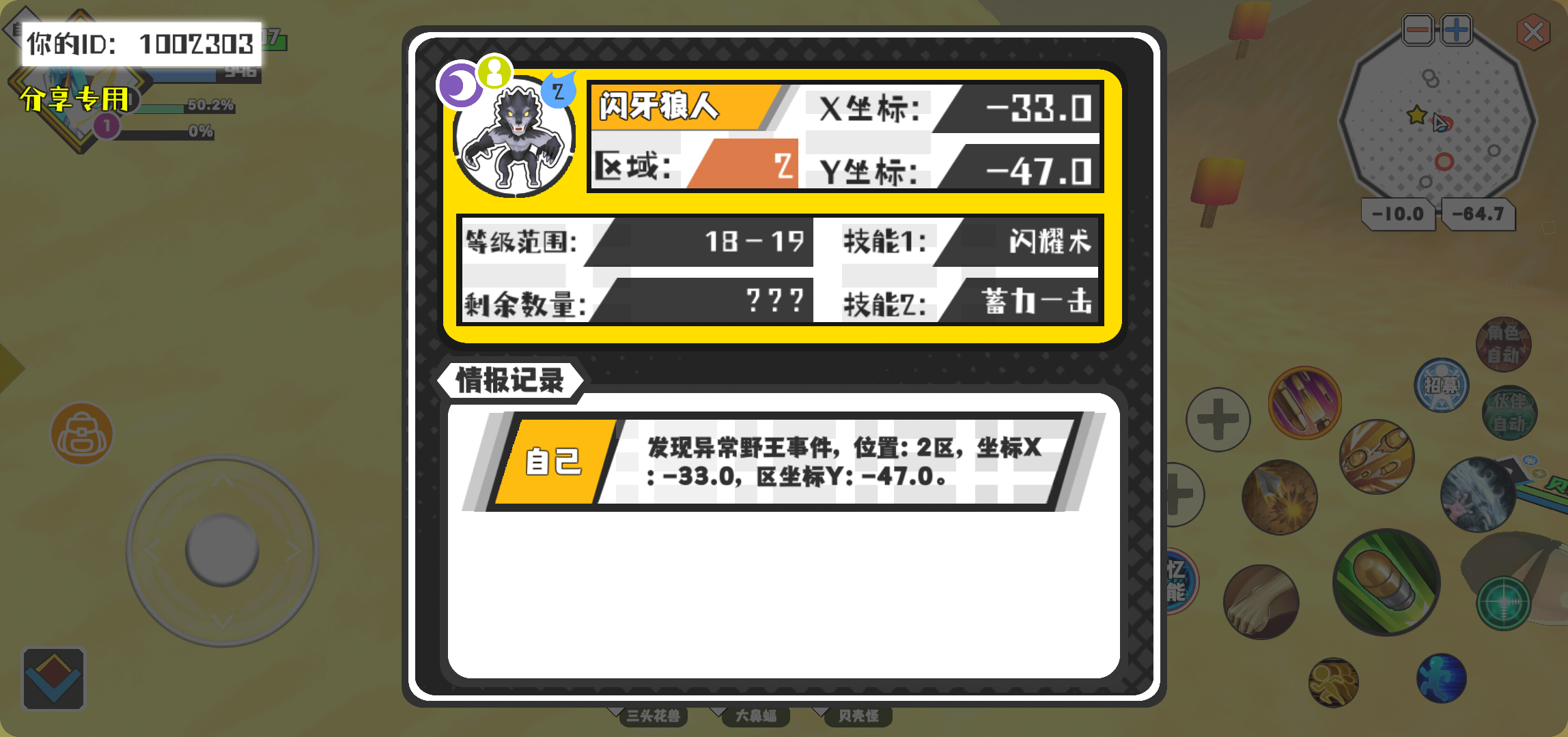 幸运时刻分享! 【野王异常出没】3月31日上午11点 - 闪牙狼人【强度2】 【2区】 【X:-33.0, Y:-47.0】