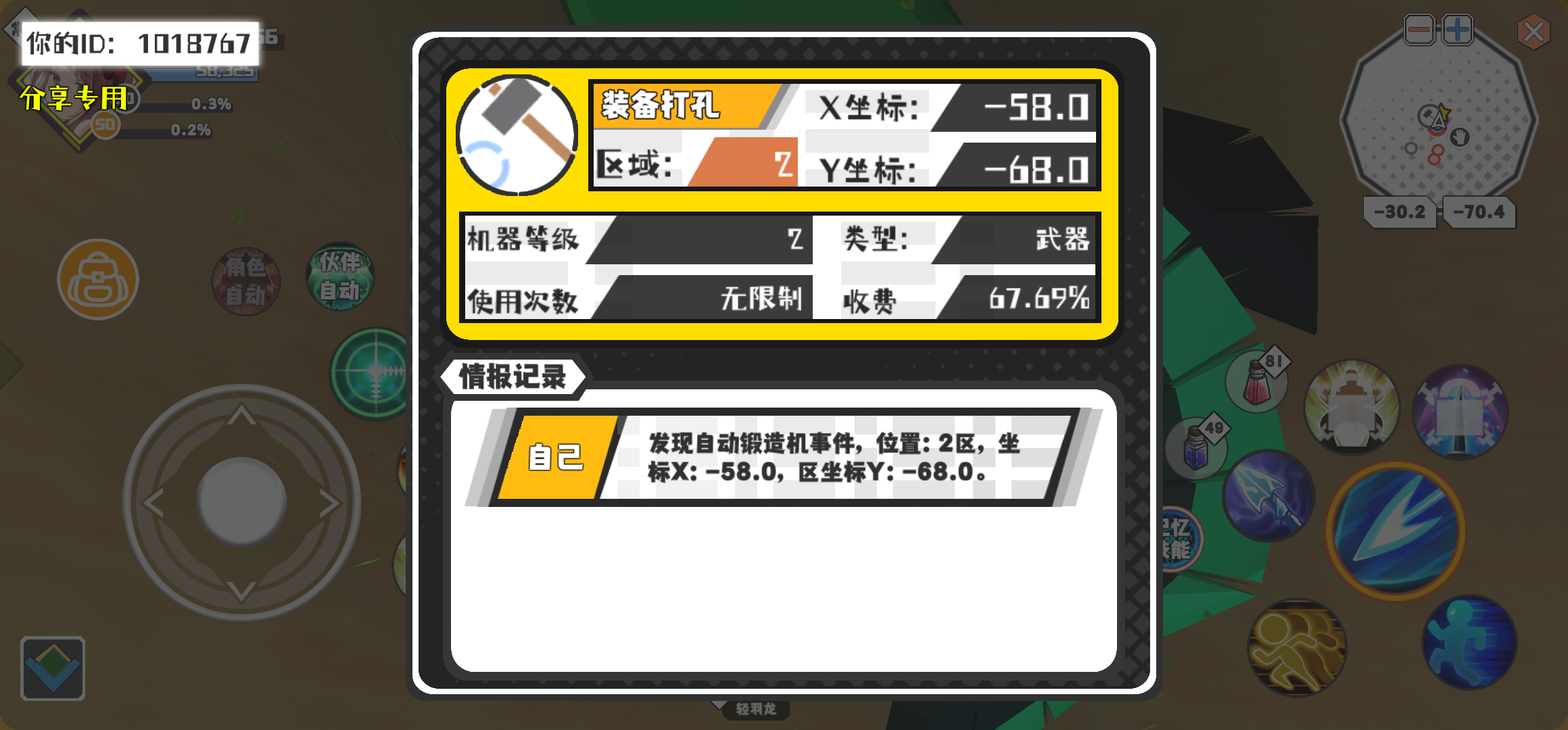 幸运时刻分享! 【自动锻造机】3月31日下午5点 - 装备打孔【2级机器】 【2区】 【X:-58.0, Y:-68.0】