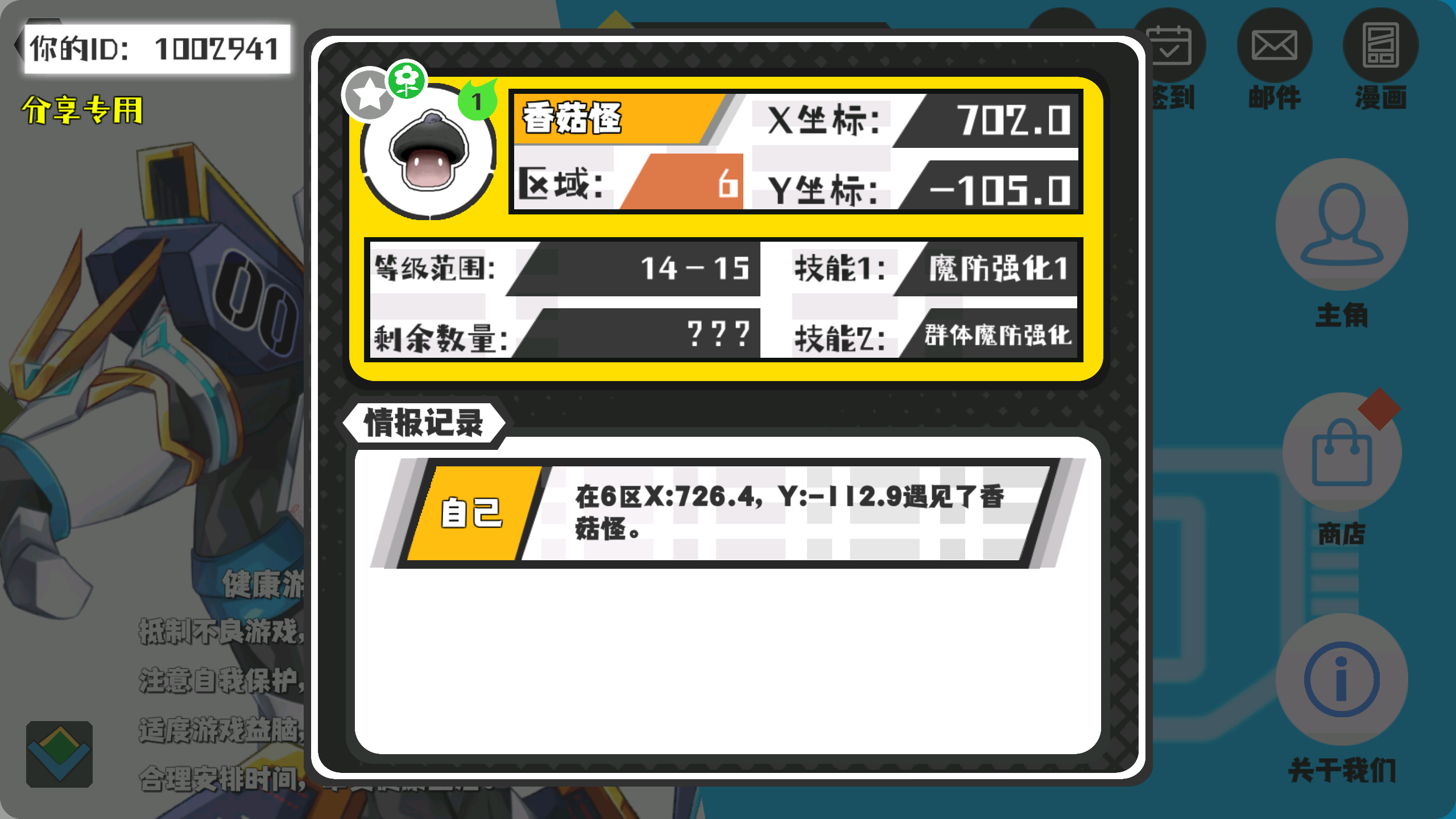 幸运时刻分享! 【魔物异常出没】3月27日上午10点 - 香菇怪【强度1】 【6区】 【X:702.0, Y:-105.0】