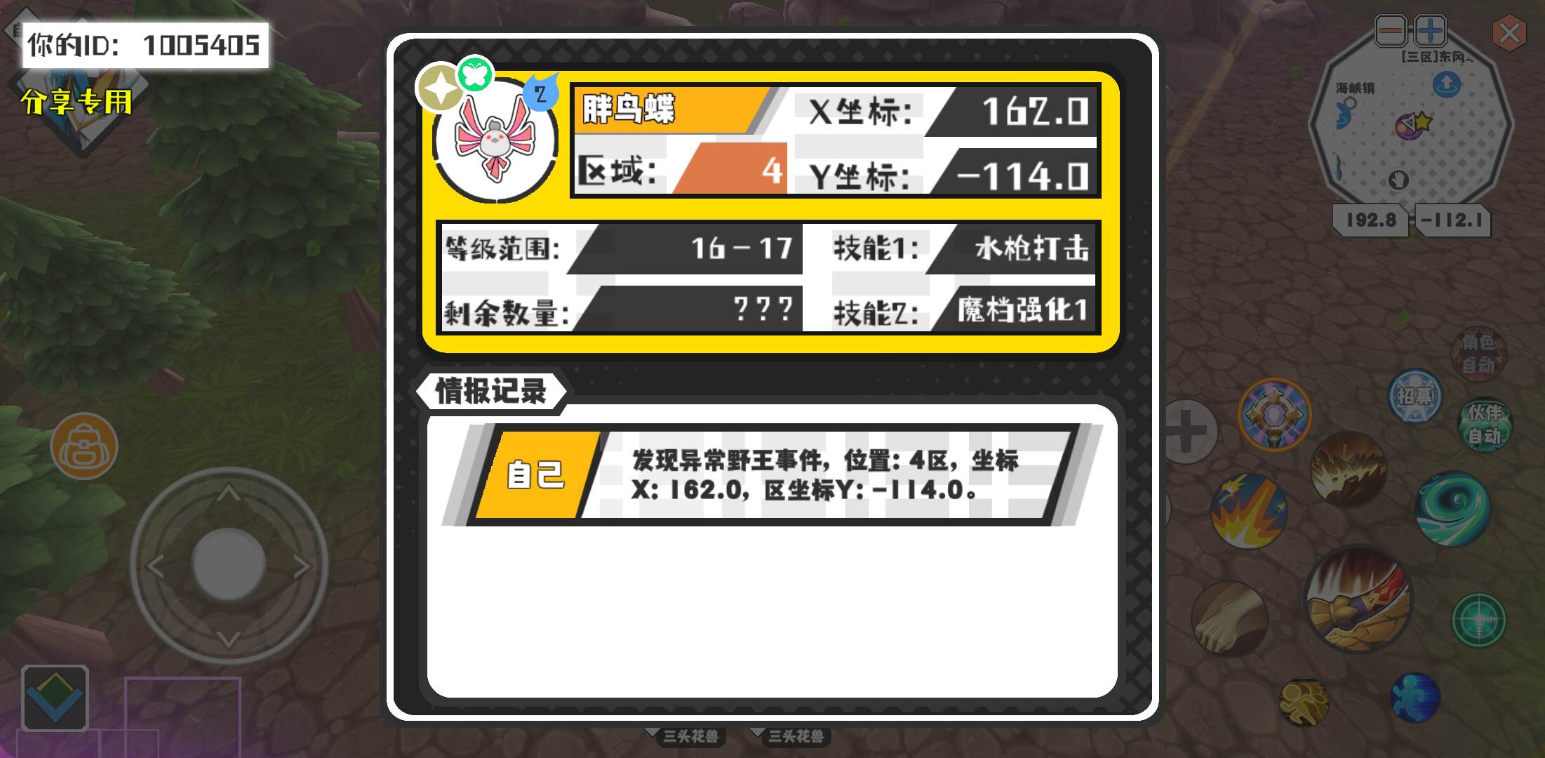 幸运时刻分享! 【野王异常出没】3月27日上午10点 - 胖鸟蝶【强度2】 【4区】 【X:162.0, Y:-114.0】