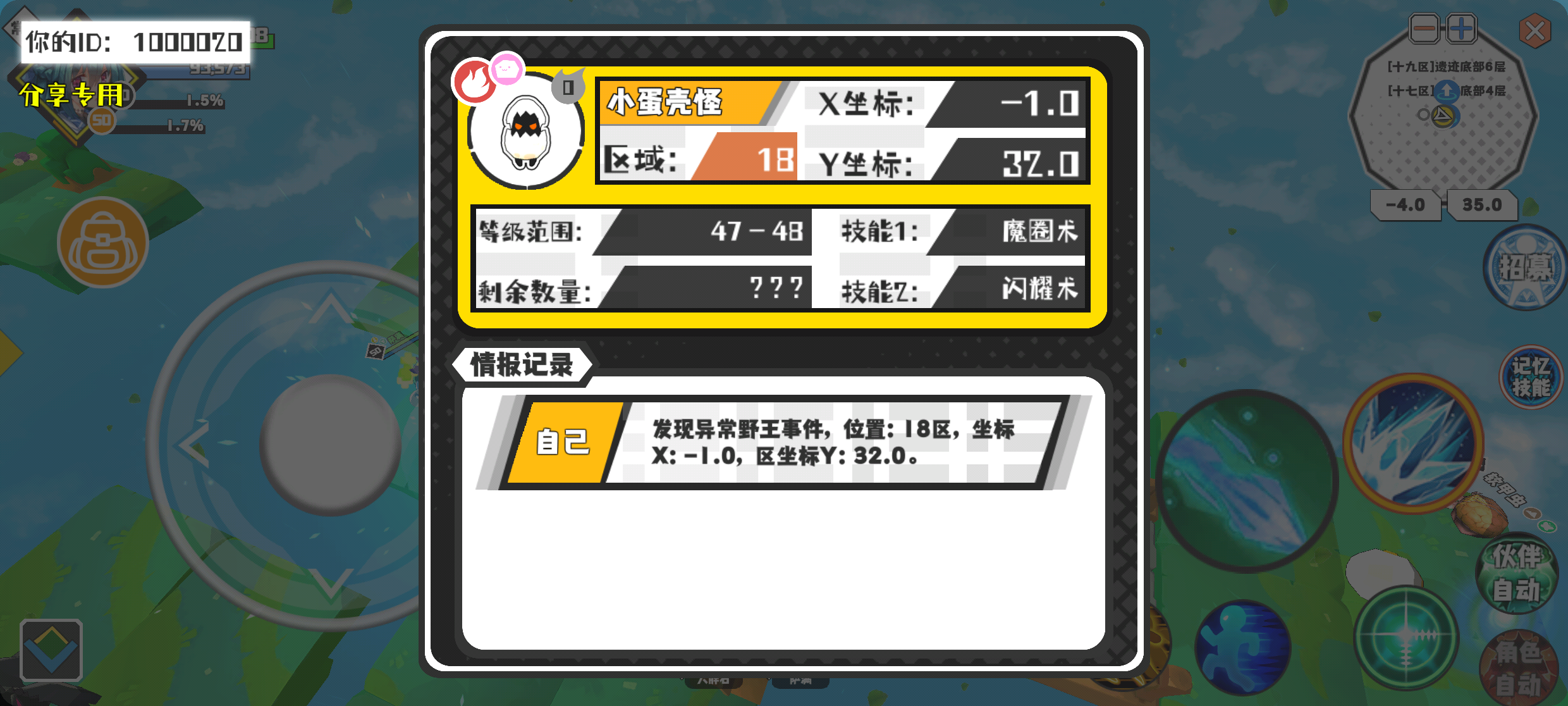 幸运时刻分享! 【野王异常出没】3月26日下午9点 - 小蛋壳怪【强度0】 【18区】 【X:-1.0, Y:32.0】
