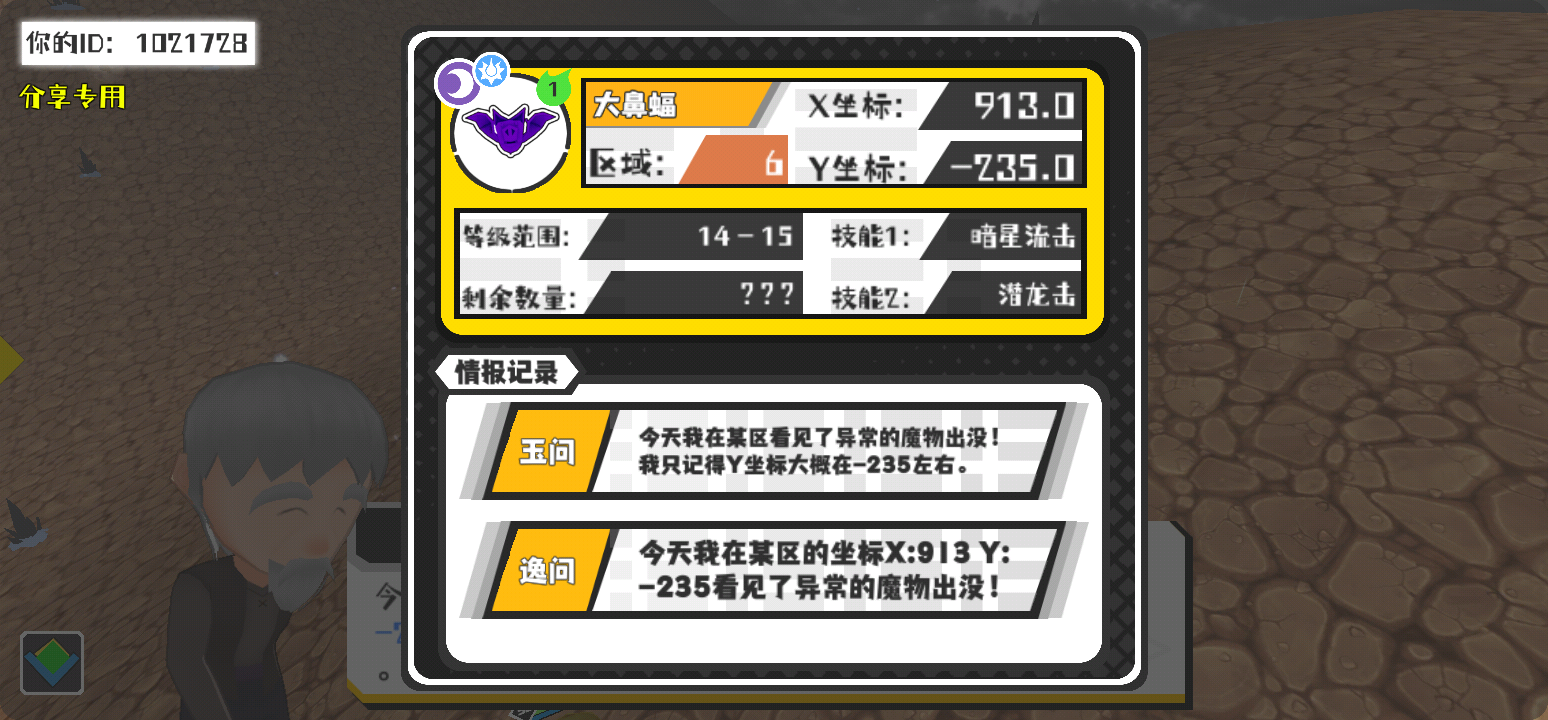 幸运时刻分享! 【魔物异常出没】3月22日下午7点 - 大鼻蝠【强度1】 【6区】 【X:913.0, Y:-235.0】
